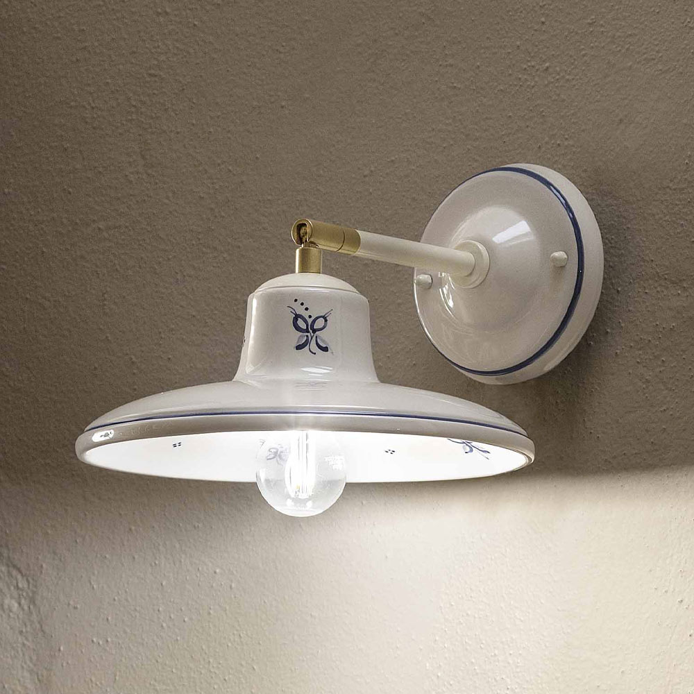 Ręcznie zdobiony kinkiet z żelaza i ceramiki, wyprodukowany we Włoszech przez Ferroluce.