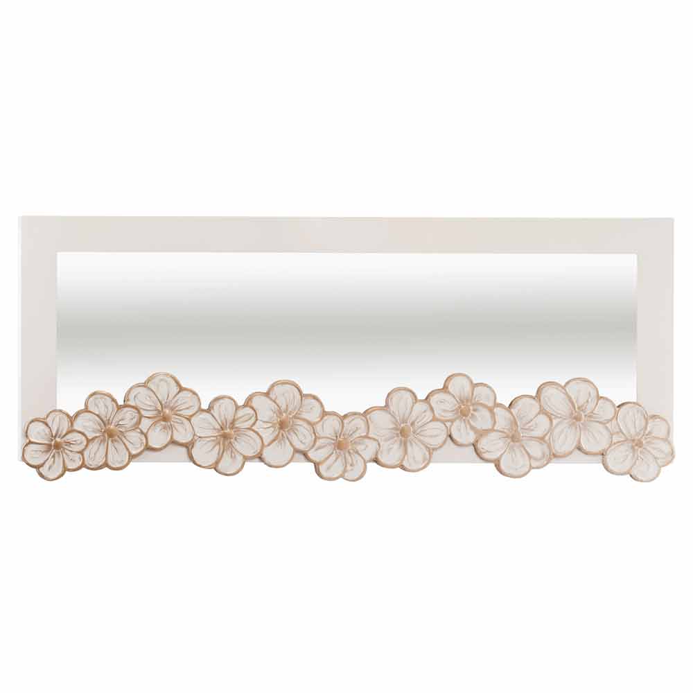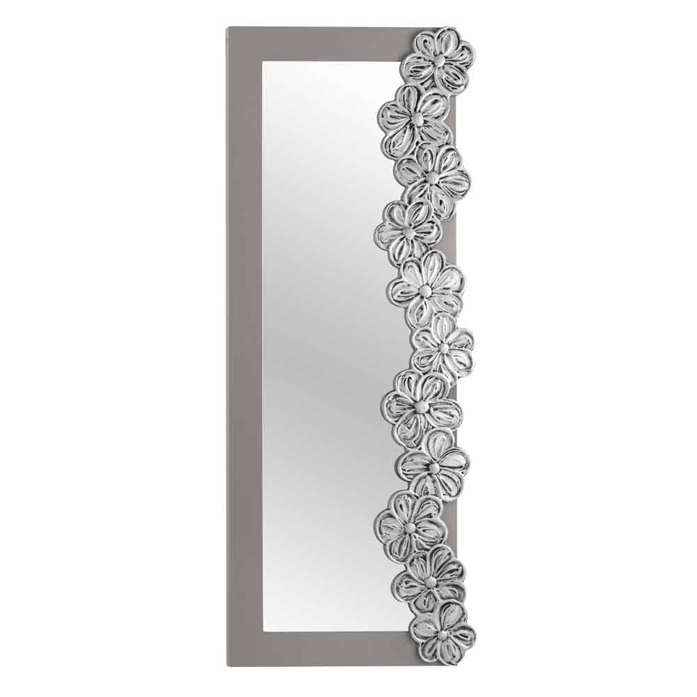 Senapina to lustro ścienne z wzorem, który przypomina naturę dzięki kompozycji kwiatowej po jednej stronie.