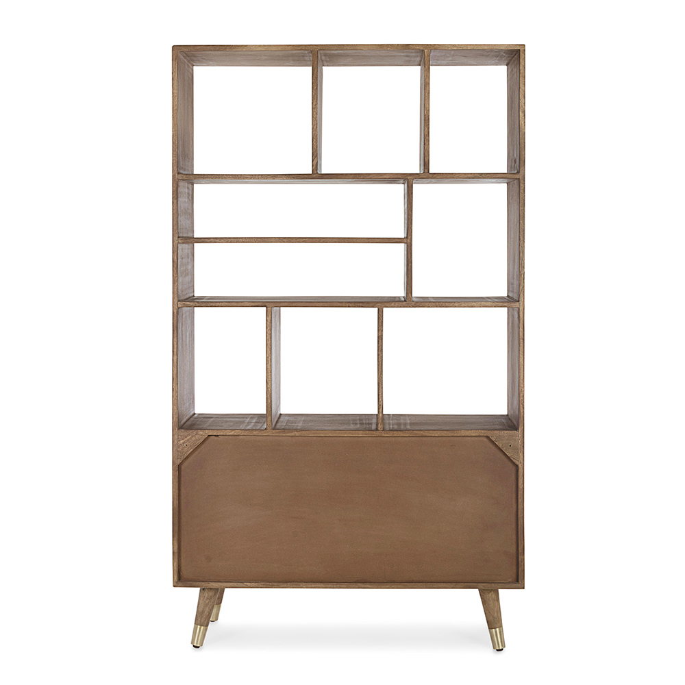 Ten wolnostojący regał ma strukturę drewna mango z oparciem z MDF.