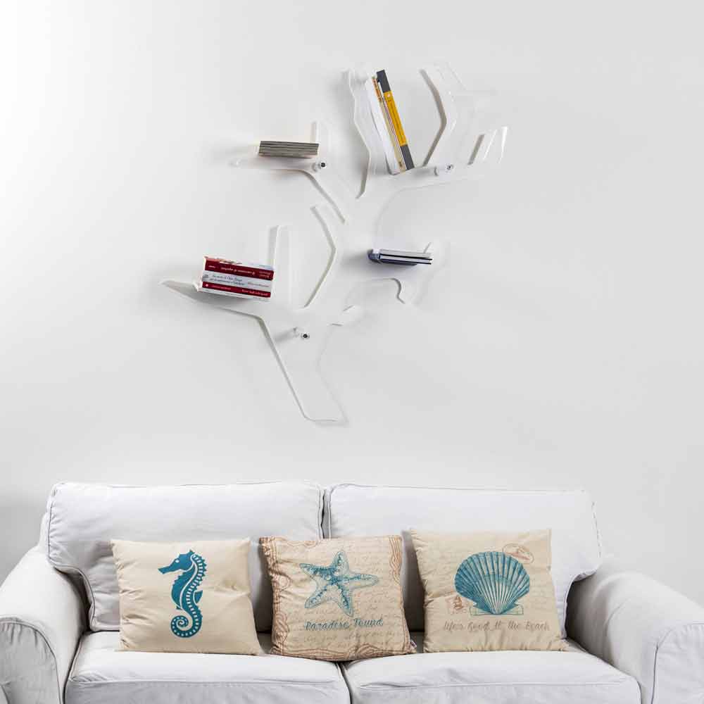 Morskie doznania dla regału ściennego Carol, wykonanego za pomocą precyzyjnych cięć laserowych, aby nadać mu kształt prawdziwego morskiego klejnotu. Przednia część z przezroczystej pleksi, która odbija część tylną, dostępna w jednolitym białym kolorze, nadaje wnętrzu elegancji. Zarówno przezroczysta podstawa, jak i półka wykonane są w 100% z pierwotnego polimeru akrylowego PMMA. Jasność i blask pozostają stałe i niezmienione w czasie. Używana przez nas dziewicza polimerowa pleksi PMMA jest nietoksyczna, hipoalergiczna, bezwonna i antybakteryjna. W 100% nadające się do recyklingu. Zgodny z normą UNI EN 71-3:200. Zaprojektowane, zaprojektowane i wykonane we Włoszech, z włoskich materiałów.
