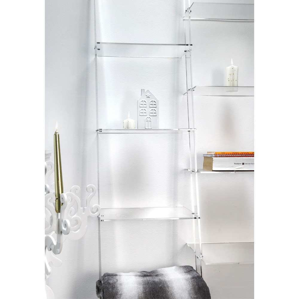 Regał ścienny w kształcie drabinki z maksymalnie 4 elementami z przezroczystej pleksi wyprodukowanej we Włoszech.