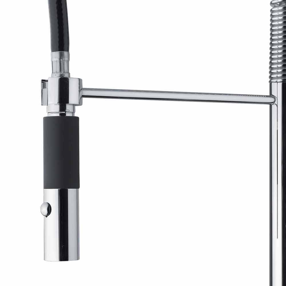 Bateria zlewozmywakowa kuchnia wykonana we Włoszech w chromowanego mosiądzu. Dzięki obecności regulowanej wylewki ze sprężyną i 2-strumieniowym natryskiem można zmaksymalizować jego funkcjonalność, umożliwiając korzystanie z produktu w całkowicie prosty i praktyczny sposób. To, co czyni go wyjątkowym, to obecność naboju zdefiniowanego ES, który może dostarczać zimną wodę, gdy dźwignia jest podniesiona do położenia środkowego, co pozwala uniknąć konieczności podgrzewania wody z bojlera, a tym samym umożliwia znaczne oszczędności energii.