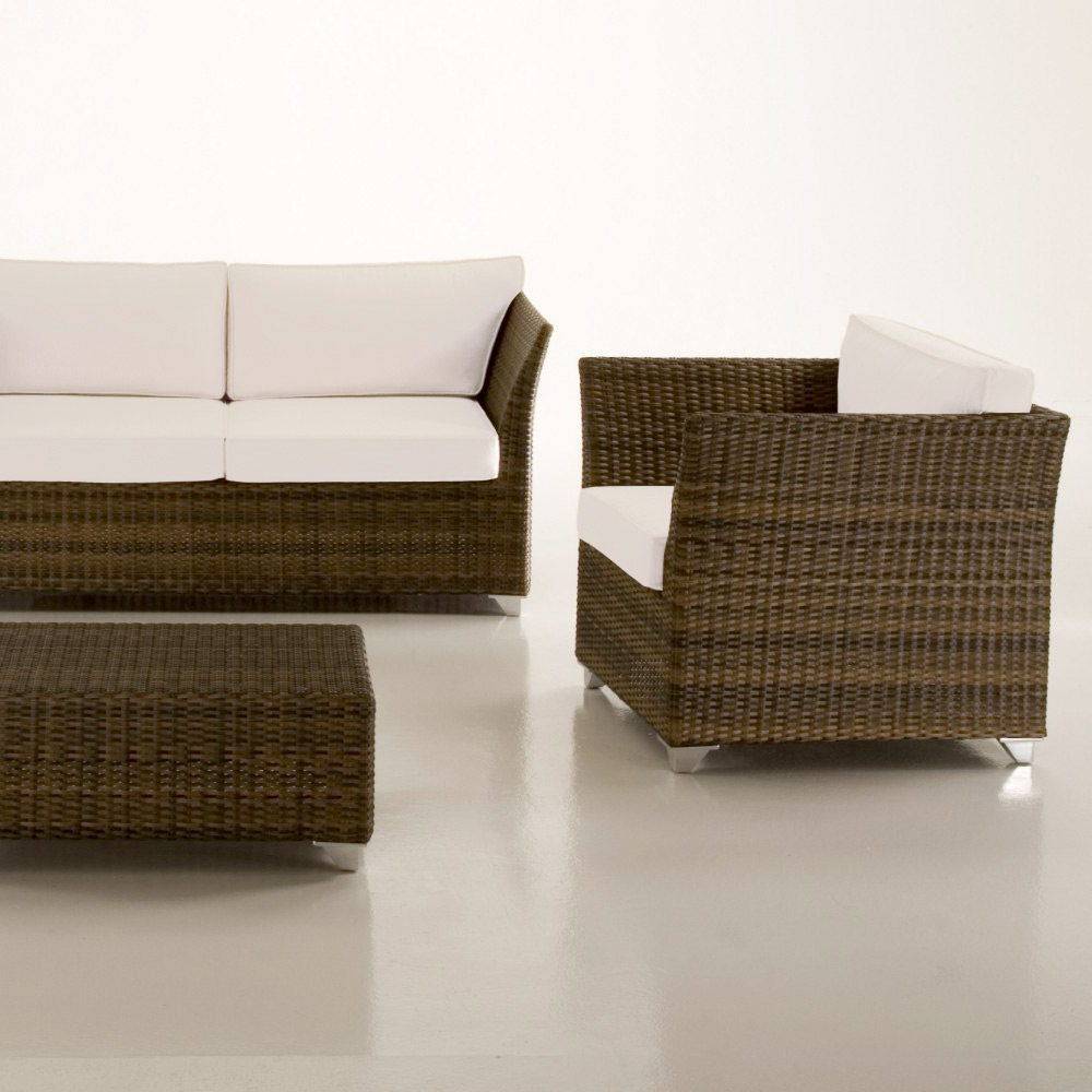 Ten ogrodowy zestaw wypoczynkowy , o stonowanej i współczesnej elegancji, doskonale nadaje się do wzbogacenia każdej przestrzeni zewnętrznej o styl. Czyste linie i przyjazne kształty sof i foteli tworzą zachęcającą atmosferę, idealną na chwile relaksu lub spotkań towarzyskich na świeżym powietrzu. Ten zestaw obejmuje wygodną dwuosobową sofę i dwa pojedyncze fotele , każdy uzupełniony miękkimi poduszkami z odpornej na warunki atmosferyczne tkaniny, które obiecują długotrwały komfort i minimalną konserwację.