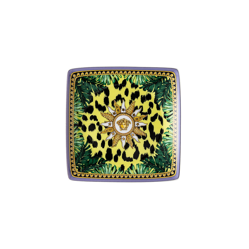Idealna do serwowania małych dań, deserów lub przystawek z nutą egzotycznej elegancji , ta miska jest również elementem dekoracyjnym, który przekształca każde otoczenie w doświadczenie współczesnego glamour . Idealna na wyrafinowane kolacje lub jako ekskluzywny prezent, niesie ze sobą niezaprzeczalny Podpis doskonałości Versace .