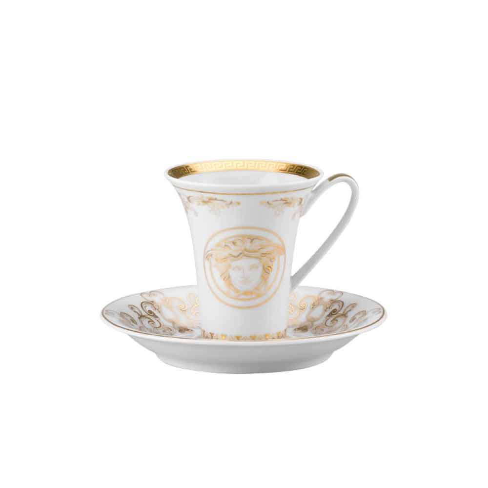 W tym zestawie 6 kubków cała wyrafinowana i luksusowa nowa kolekcja naczyń stołowych Medusa Gala jest zamknięta, reinterpretuje tradycyjne motywy Versace w projektowaniu i dekoracji: ikona przedstawiająca Meduzę przeplata się z wyrafinowanymi barokowymi ornamentami w drogocennym złotym filigranie. Ekscytujący efekt kontrastów między szczerością porcelany a czystym złotem daje życie idealnej mise en place, nowoczesnej i jednocześnie wyjątkowej.