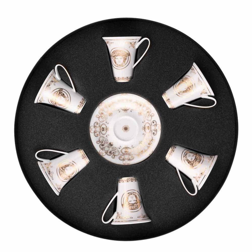 Zestaw 6 filiżanek do espresso z porcelany Versace Medusa Gala Gold