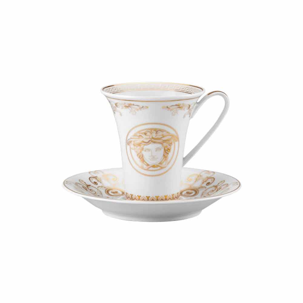 Fantastyczna i designerska wysoka filiżanka do kawy ze spodkiem marki Versace jest częścią wyrafinowanej i luksusowej kolekcji stolików Medusa Gala.