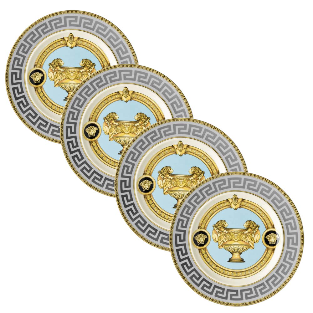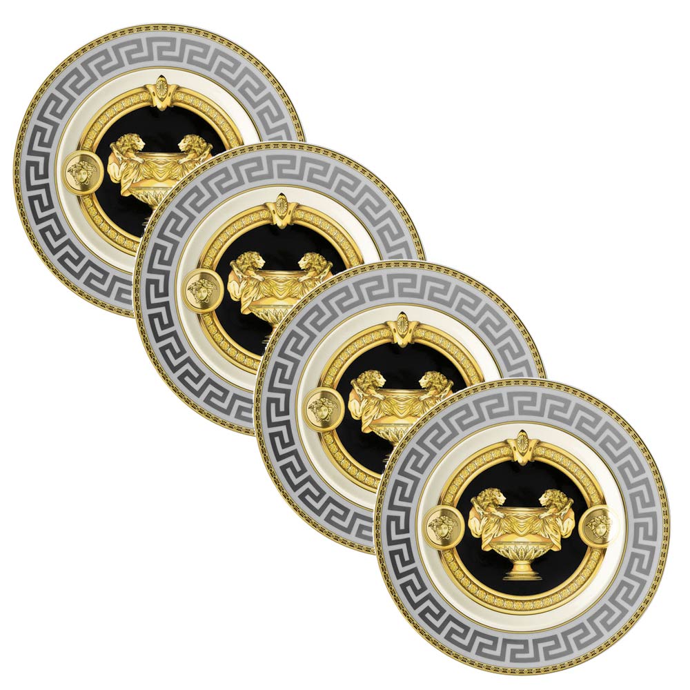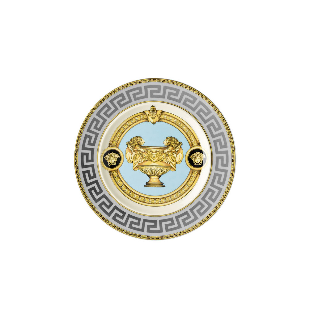 Versace Prestige Gala Bread Plate , wykonany z cienkiej porcelany , jest idealnym przykładem luksusu i ponadczasowej elegancji . Wyrafinowany projekt charakteryzuje się centralną dekoracją ze złotą amforą , symbolem królewskości i tradycji, oprawioną w odważny grecki motyw i złote detale, które oddają istotę domu. Dostępny na czarnym lub jasnoniebieskim tle, oferuje wybór stylu na każdą okazję.