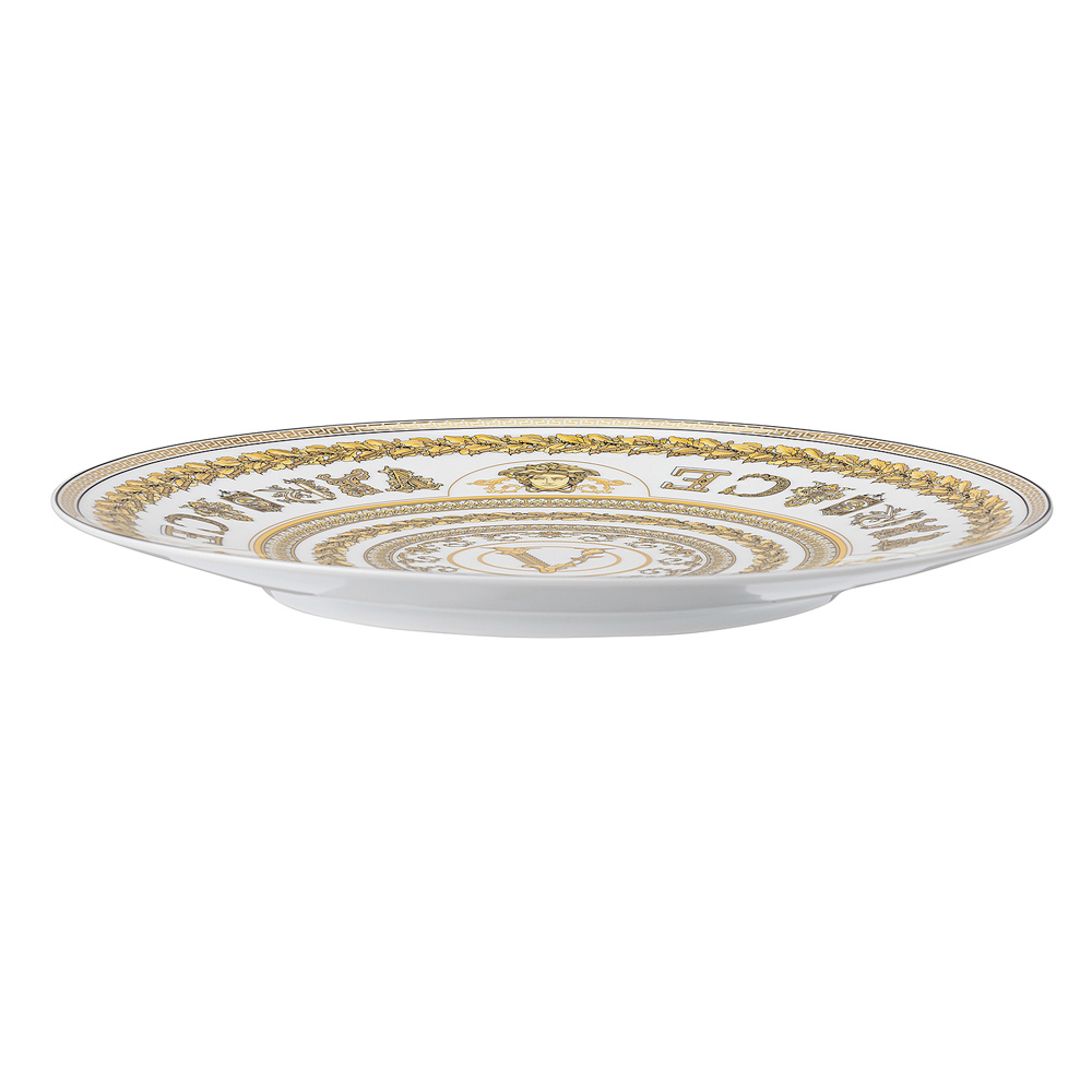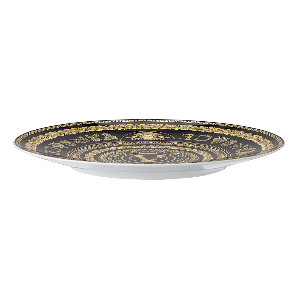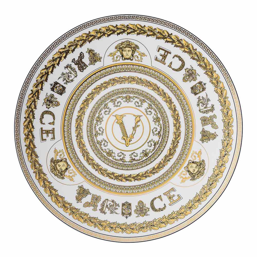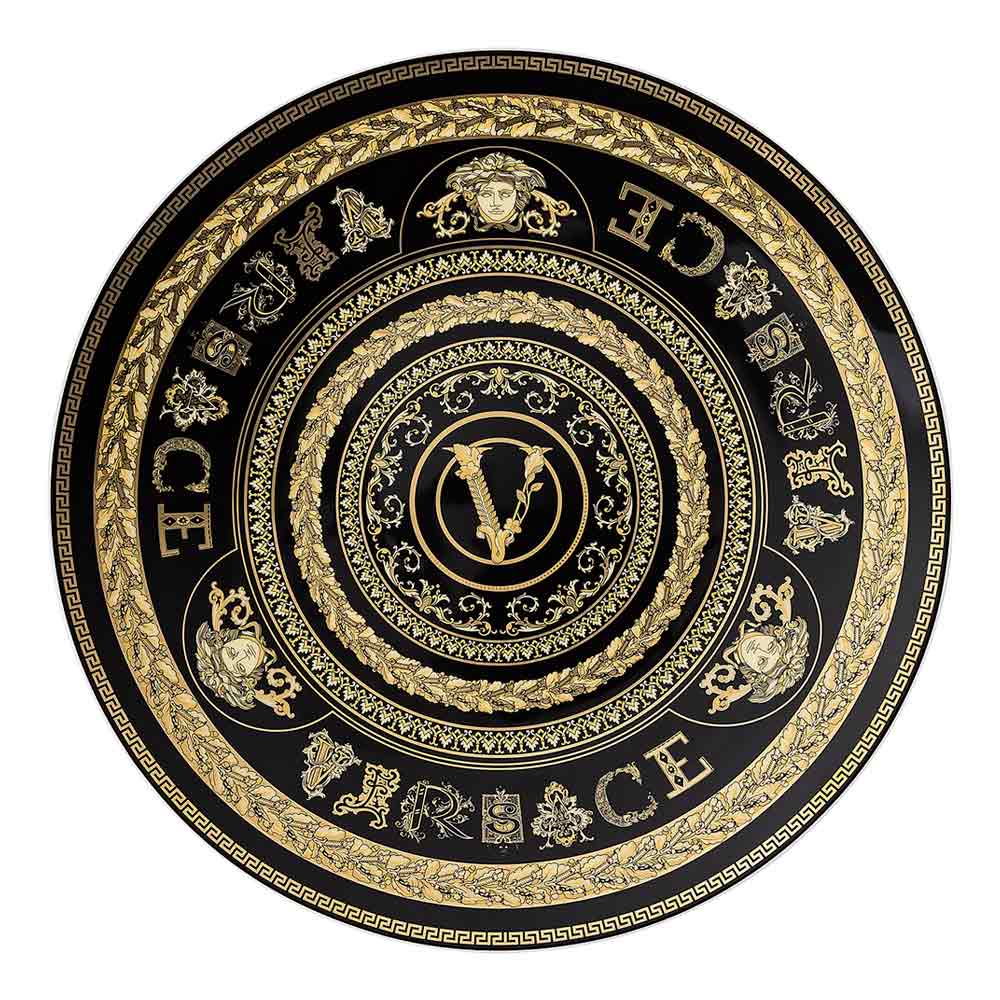 Podkładka pod talerz Virtus Gala od Versace to prawdziwa celebracja luksusu i wyrafinowania , wykonana z drogocennej porcelany . Jej charakterystyczny design łączy błyszczący kolor z wizualnie uderzającymi złotymi zdobieniami , wzbogacony barokowymi detalami i kultowym logo Versace „V”, symbolem ponadczasowej elegancji.