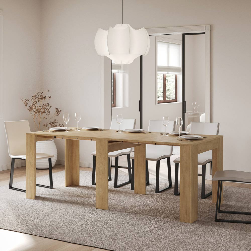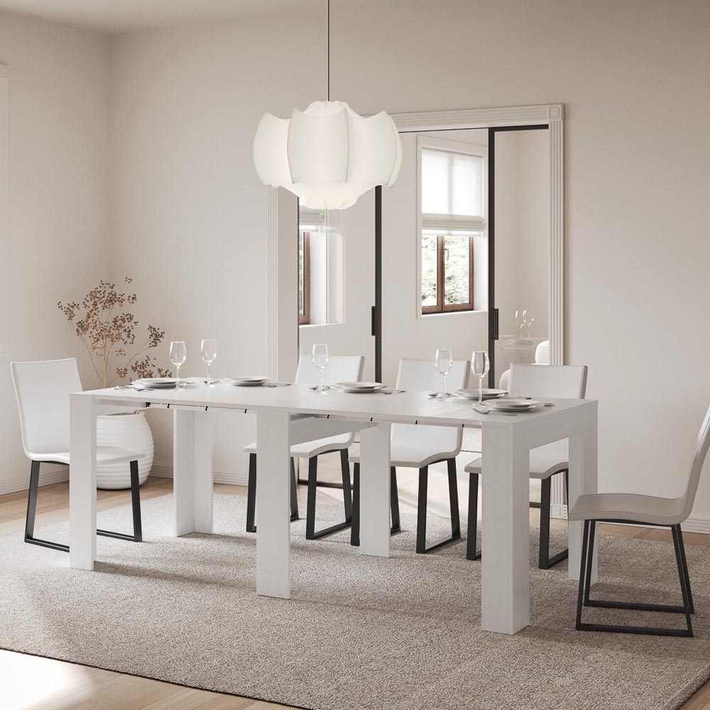 Ten rozsuwany stolik konsolowy jest uosobieniem funkcjonalnego i minimalistycznego designu. Jego elegancki kształt i czyste linie sprawiają, że jest to wszechstronny mebel, idealny do każdej przestrzeni, od przedpokoju po salon, oferując obraz przestrzeni i porządku. Stół konsolowy łatwo się rozkłada, przekształcając się z dyskretnego mebla w praktyczny stół jadalny, idealny do przyjmowania przyjaciół i rodziny przy specjalnych okazjach. Ta wszechstronność sprawia, że jest to idealny wybór dla tych, którzy mieszkają w małych przestrzeniach, ale nie chcą rezygnować z funkcjonalności i stylu.