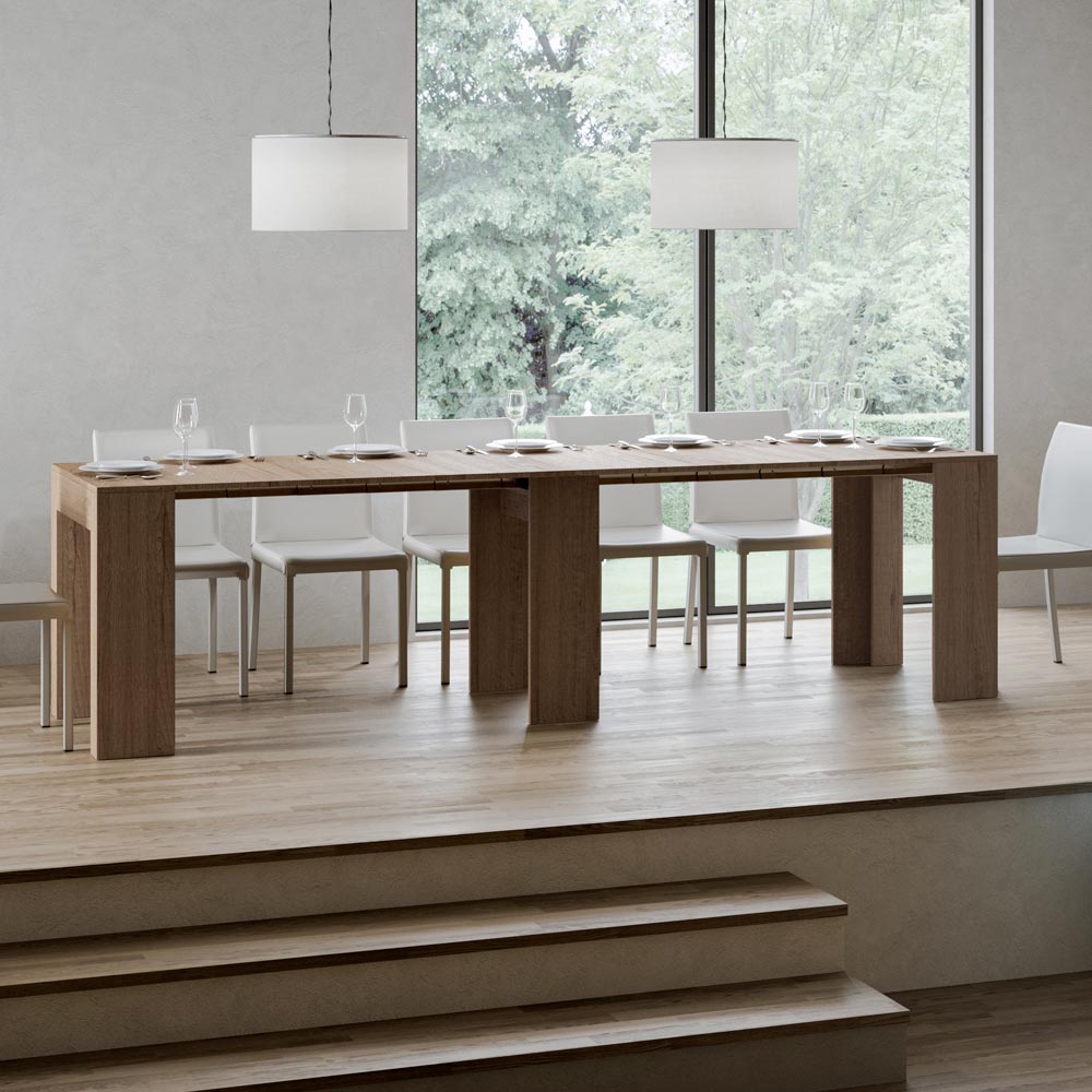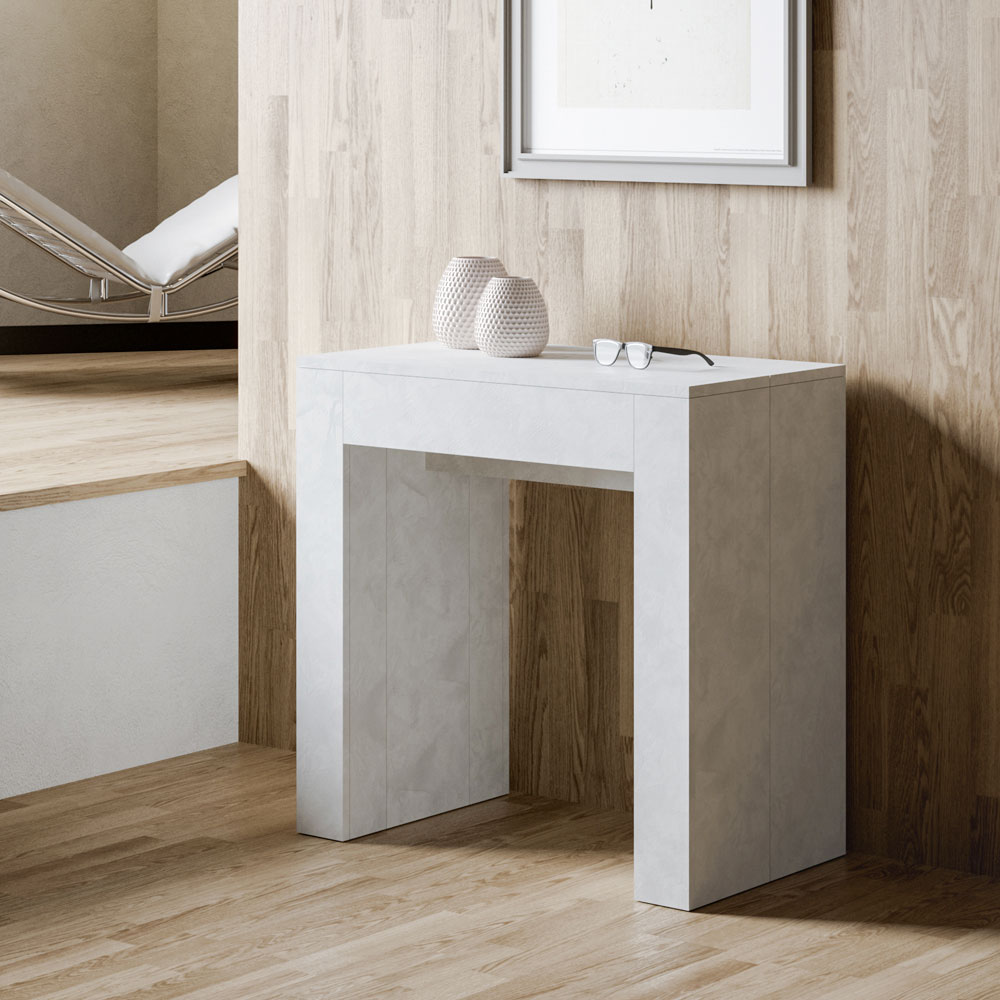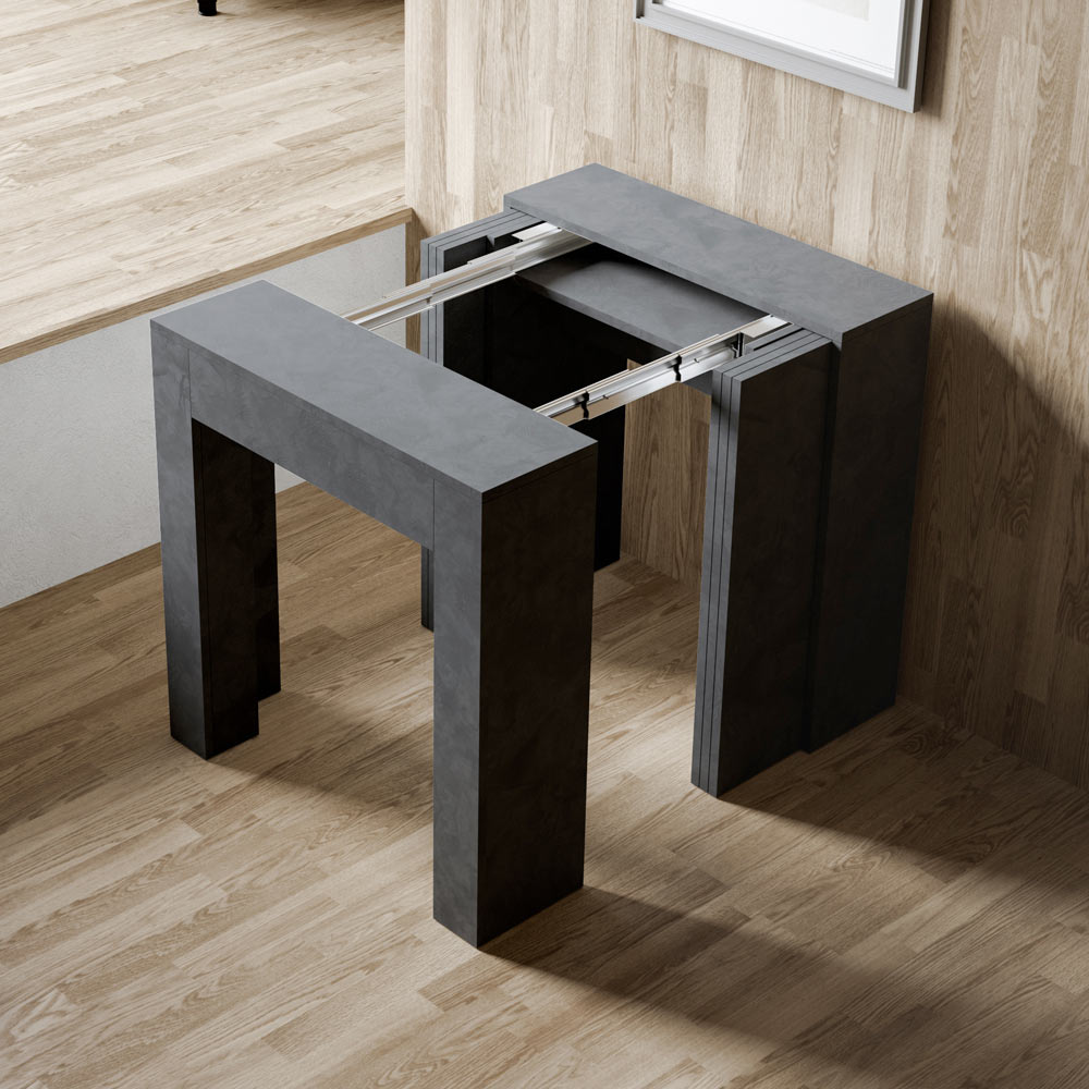 Rozkładany mechanizm jest przykładem inteligencji przestrzennej: stolik konsoli można łatwo przekształcić w większy stół, co czyni go wszechstronnym rozwiązaniem dla małych mieszkań lub pomieszczeń wymagających wielofunkcyjnych mebli. Jest idealny dla tych, którzy cenią funkcjonalne piękno i inteligentny design, który oszczędza miejsce bez poświęcania stylu.