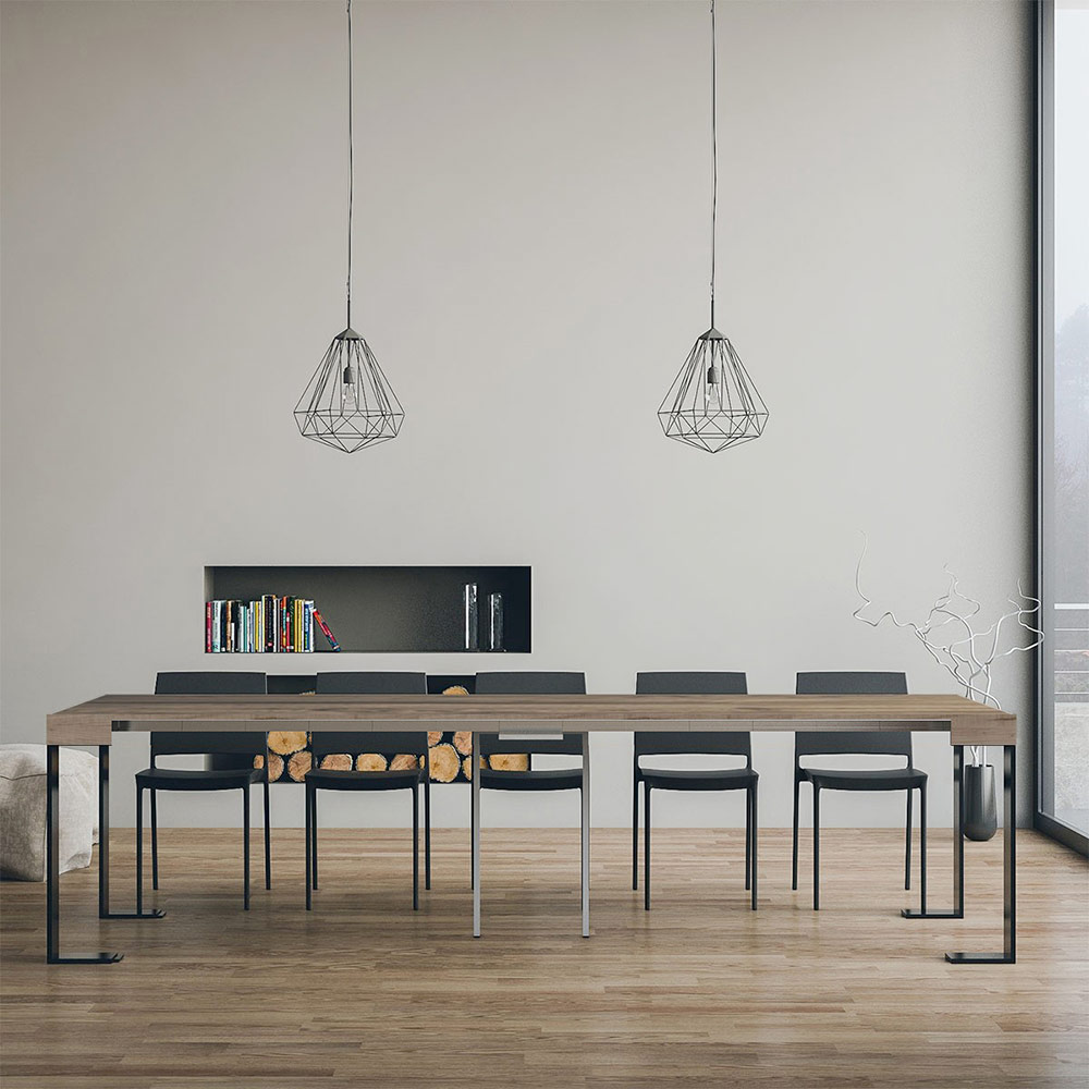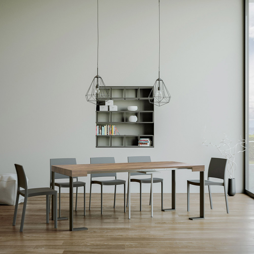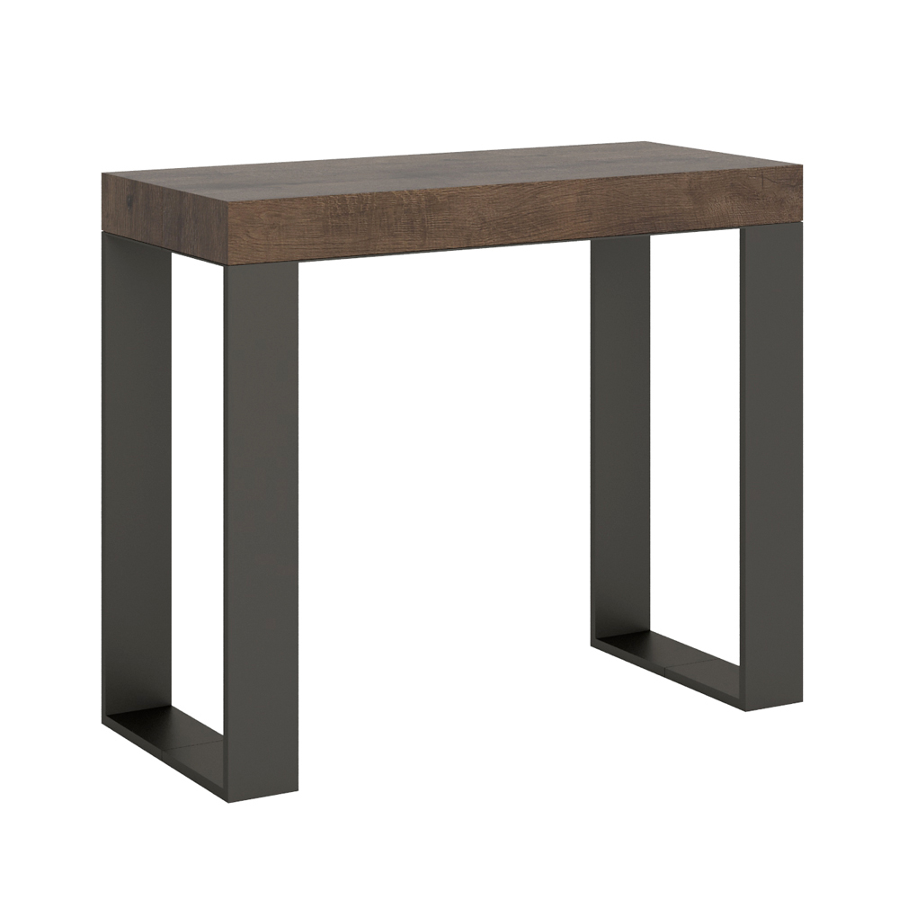 Rozkładana konsola wykonana z fornirowanego drewna i żelaza, Made in Italy
