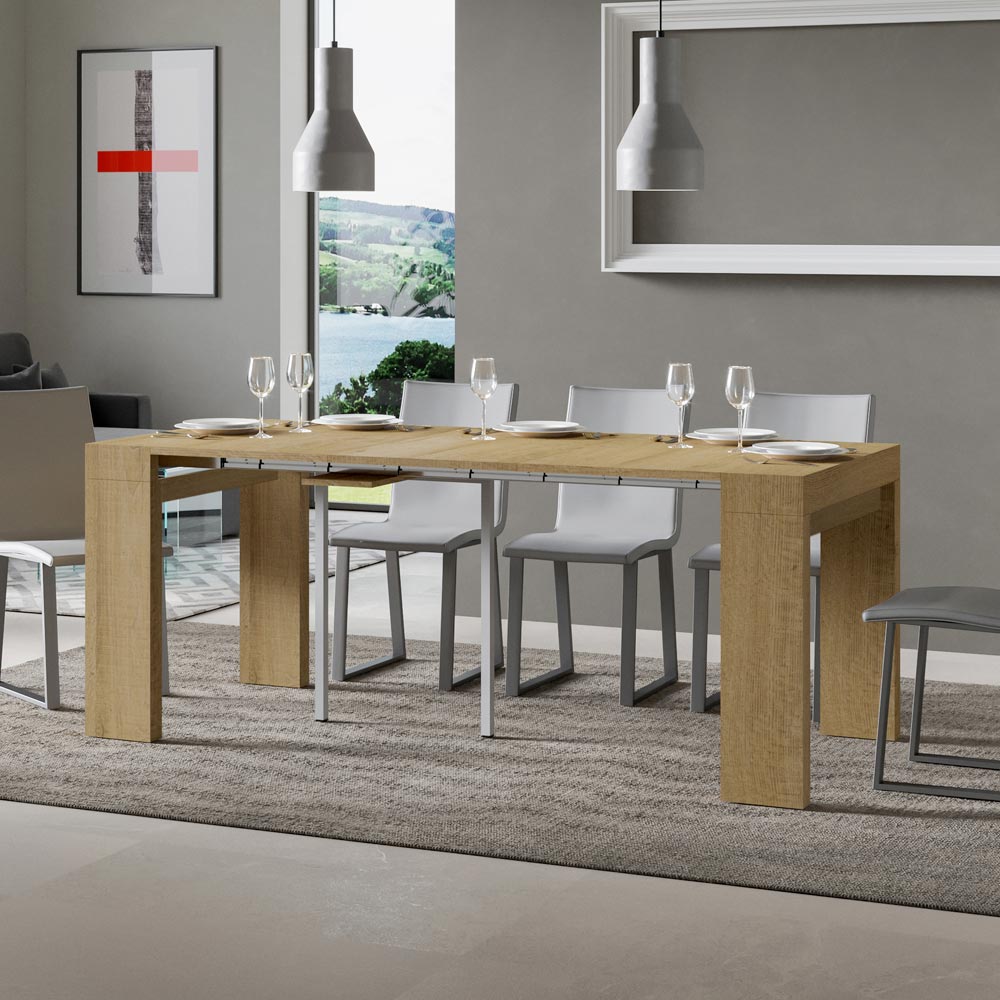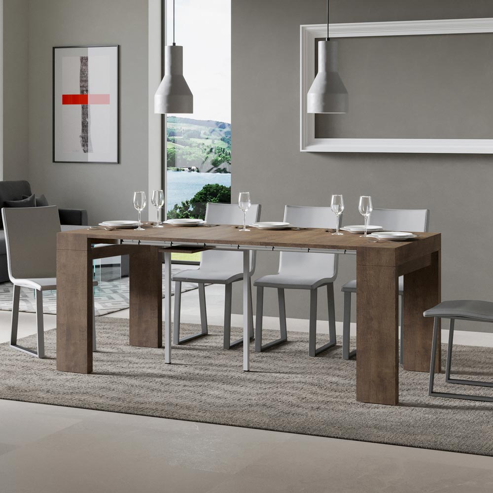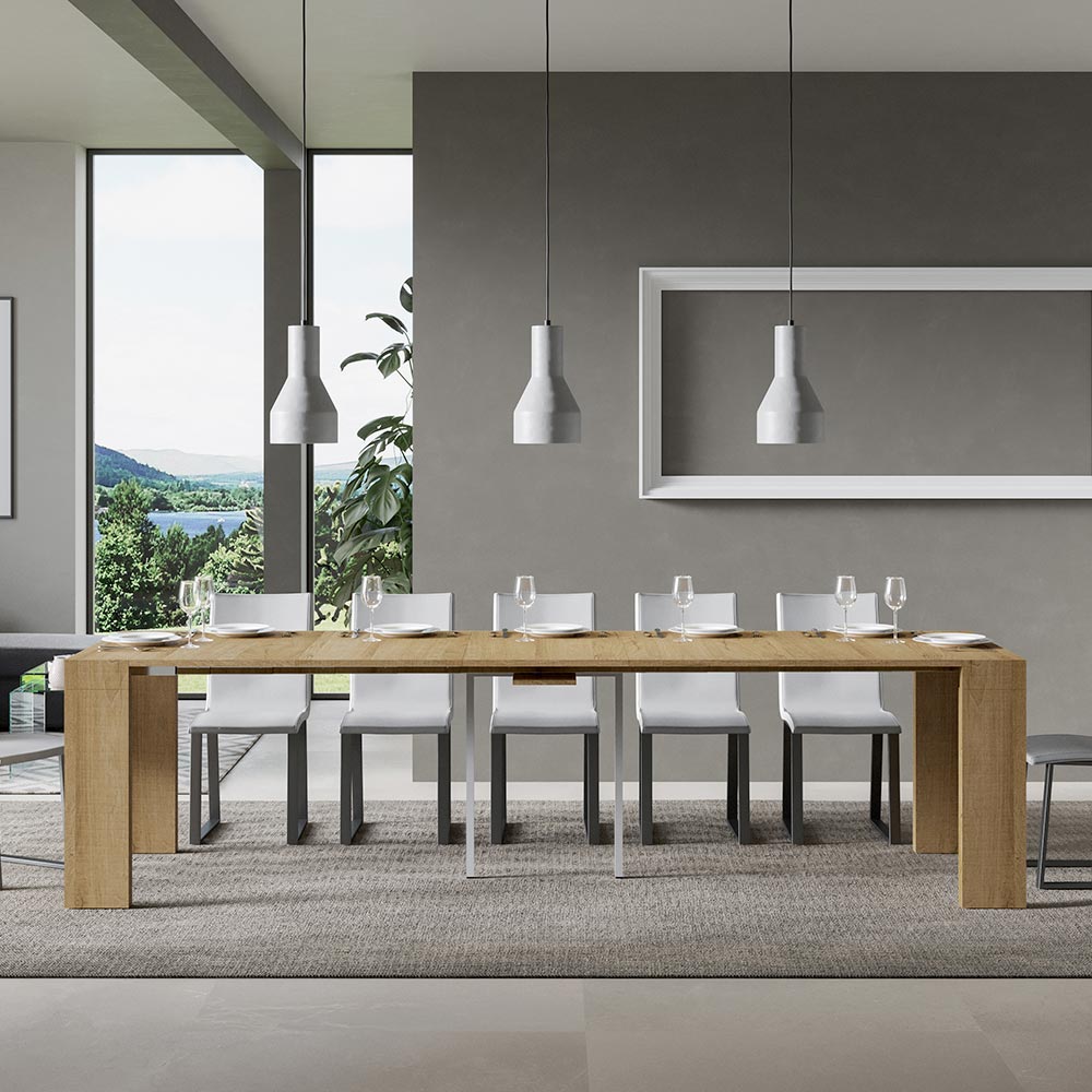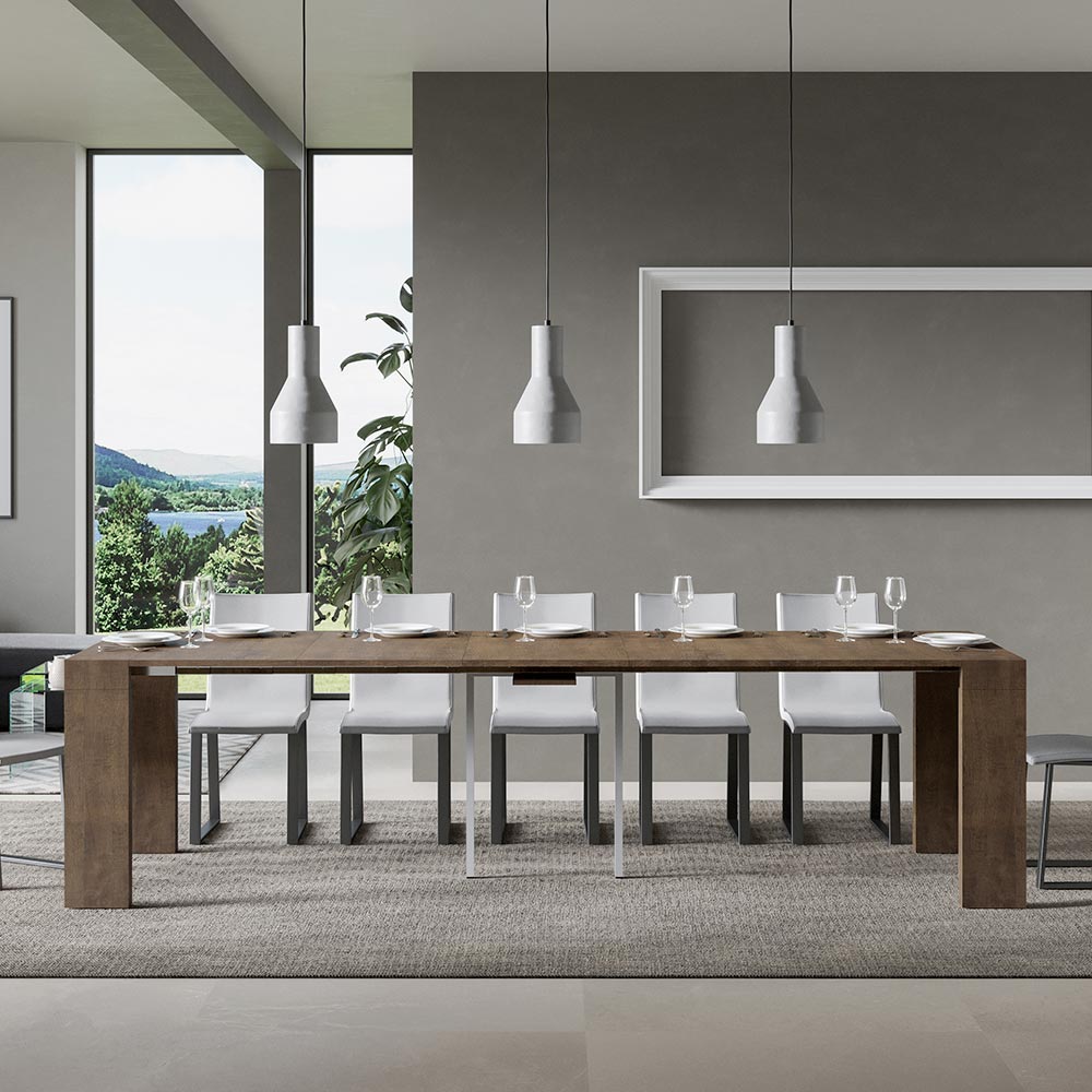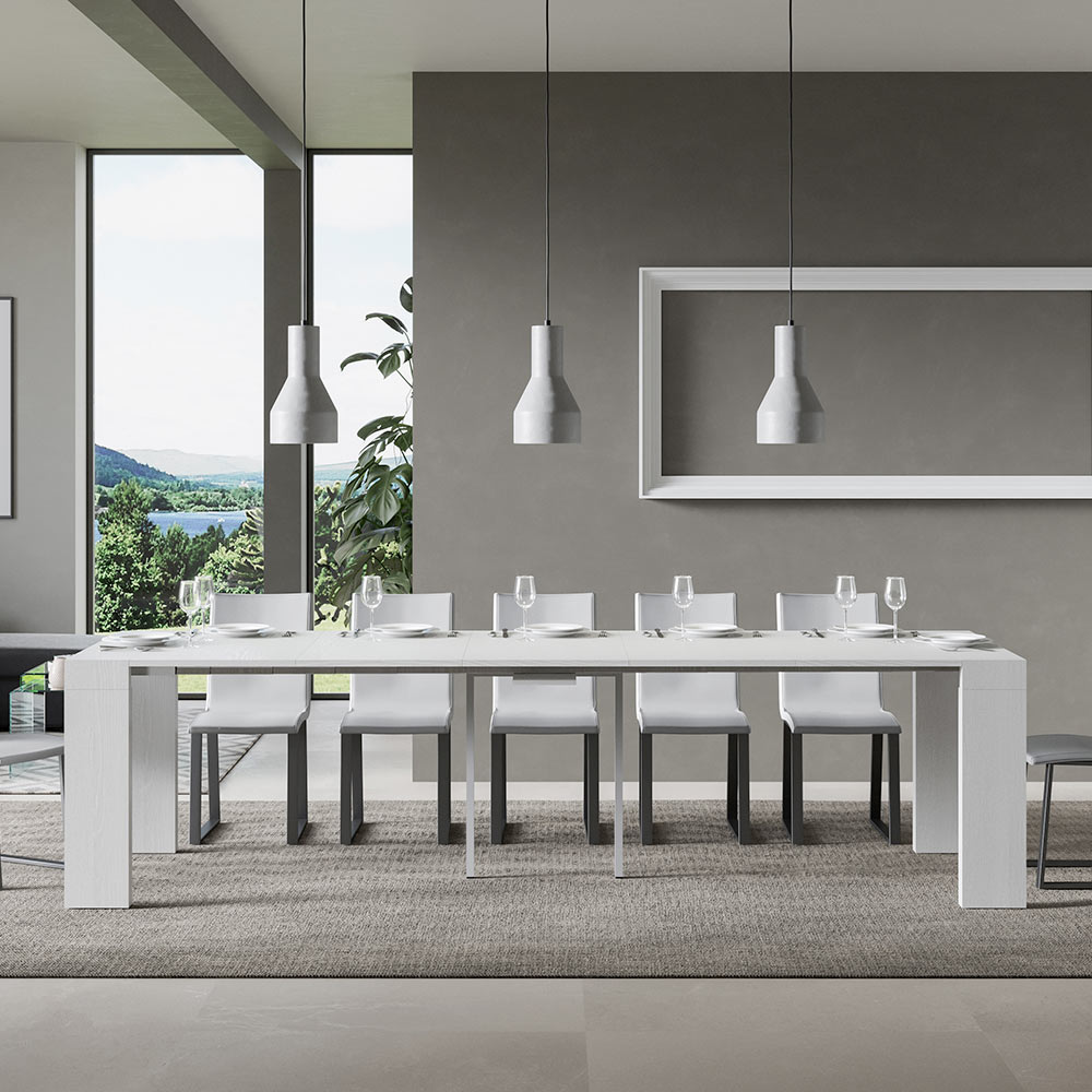 Rozsuwany mechanizm è przykład inteligencji przestrzennej: stół konsolowy można łatwo przekształcić w większy stół, co czyni go wszechstronnym rozwiązaniem dla małych mieszkań lub pomieszczeń wymagających wielofunkcyjnych mebli. È jest idealny dla tych, którzy cenią funkcjonalne piękno i mądry design, który oszczędza miejsce bez poświęcania stylu. Dzięki tej konsoli oferujemy nie tylko mebel, ale obietnicę praktyczności i dyskretnej elegancji, która doskonale nadaje się zarówno do spokojnych chwil w samotności, jak i do spotkań towarzyskich, zawsze zapewniając wrażenie porządku i wyrafinowania. Dostępne wykończenia: