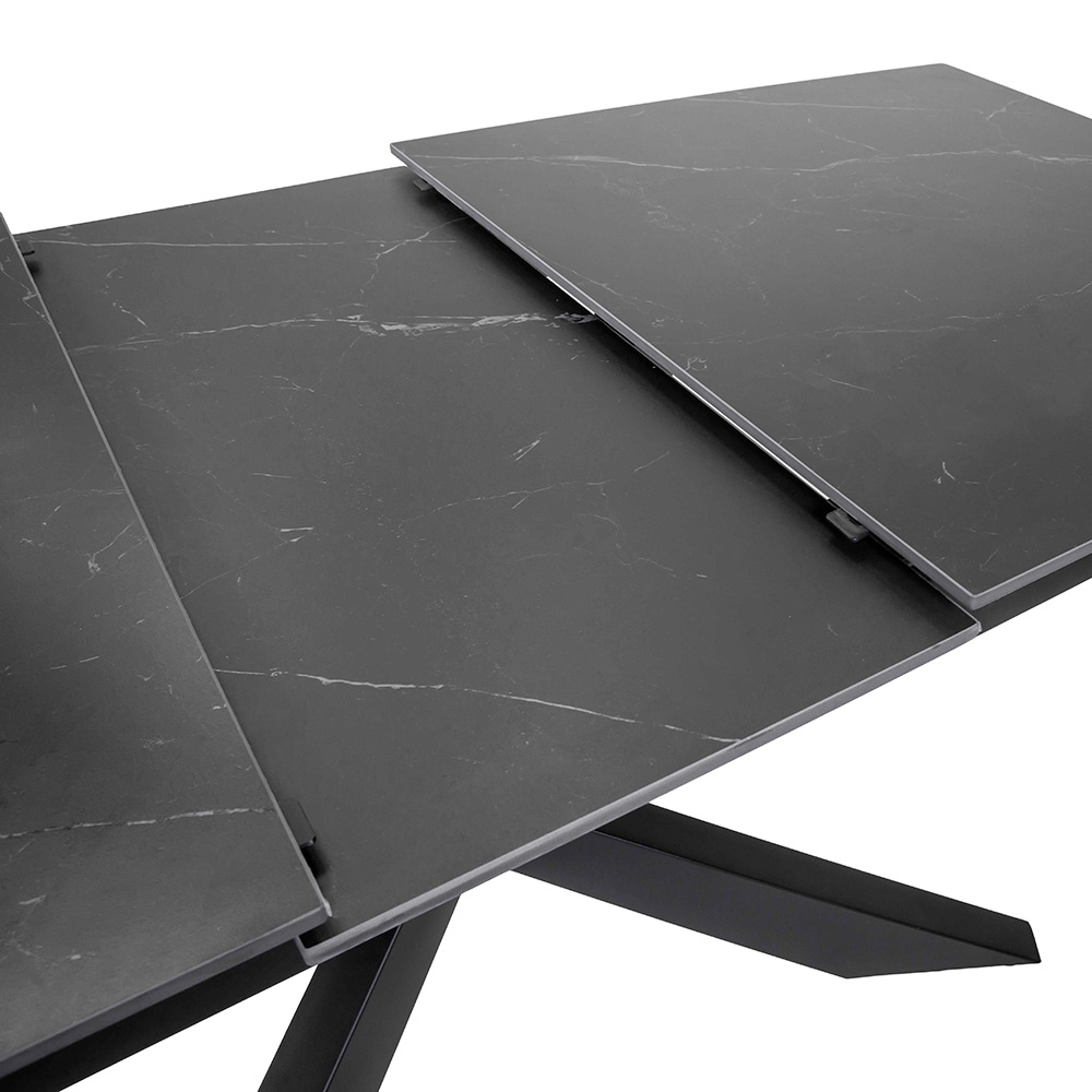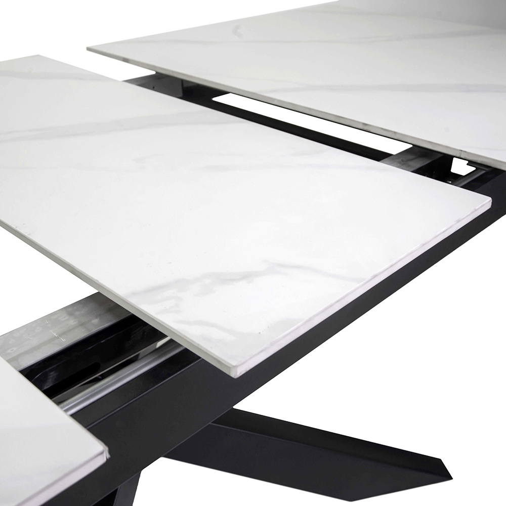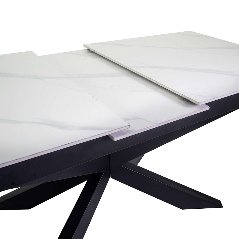 Kamień spiekany nie tylko zapewnia trwałość i łatwość czyszczenia, ale także dodaje odrobinę nowoczesnego luksusu dzięki naturalnemu ziarnu i eleganckim wykończeniom. Ten stół idealnie pasuje do każdego otoczenia: od salonu po jadalnię, do kontraktowych przestrzeni.