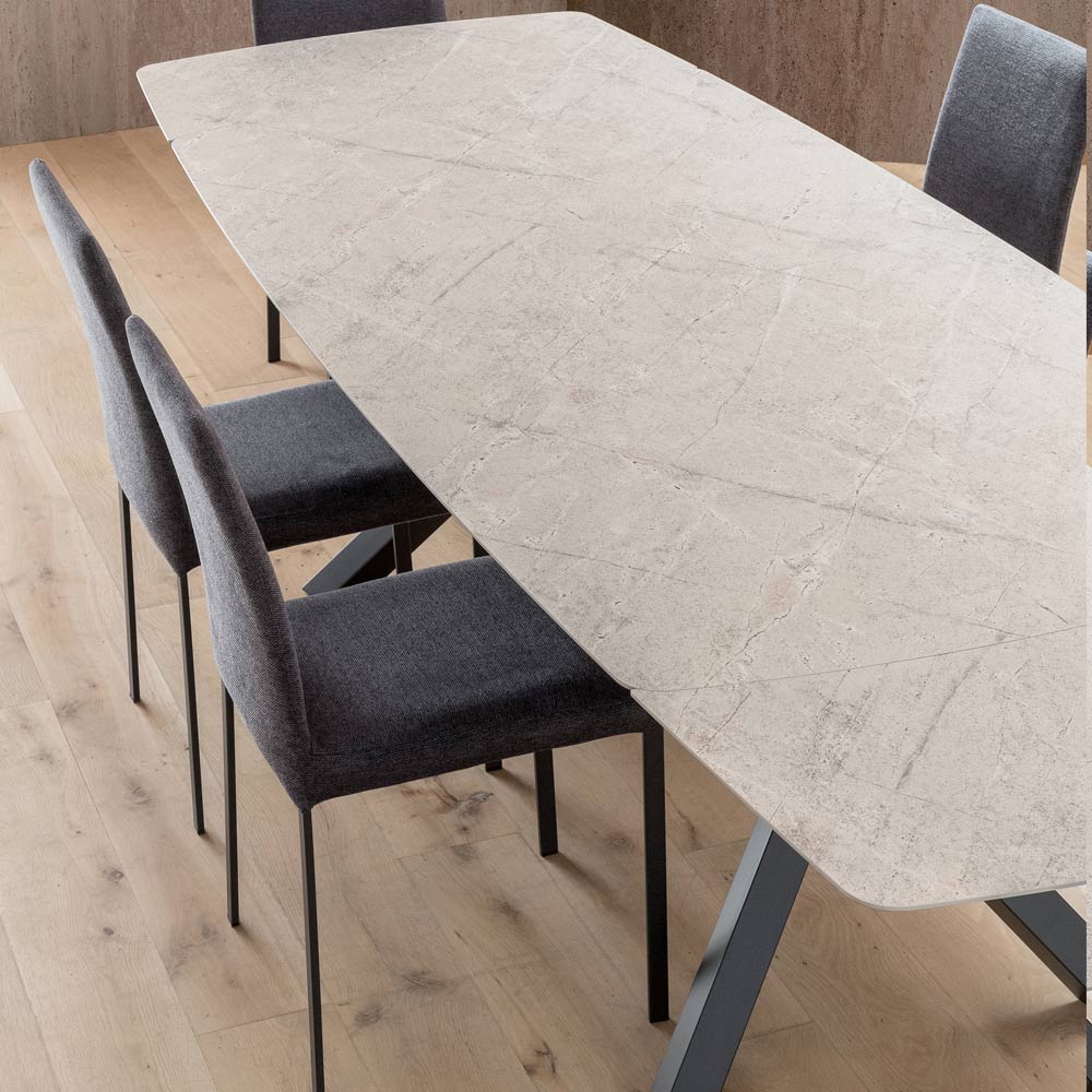 Dzięki zintegrowanemu systemowi rozkładania z bocznymi przedłużeniami stół można łatwo rozłożyć, zapewniając maksymalną elastyczność na każdą okazję, od codziennych lunchów po spotkania z licznymi gośćmi.