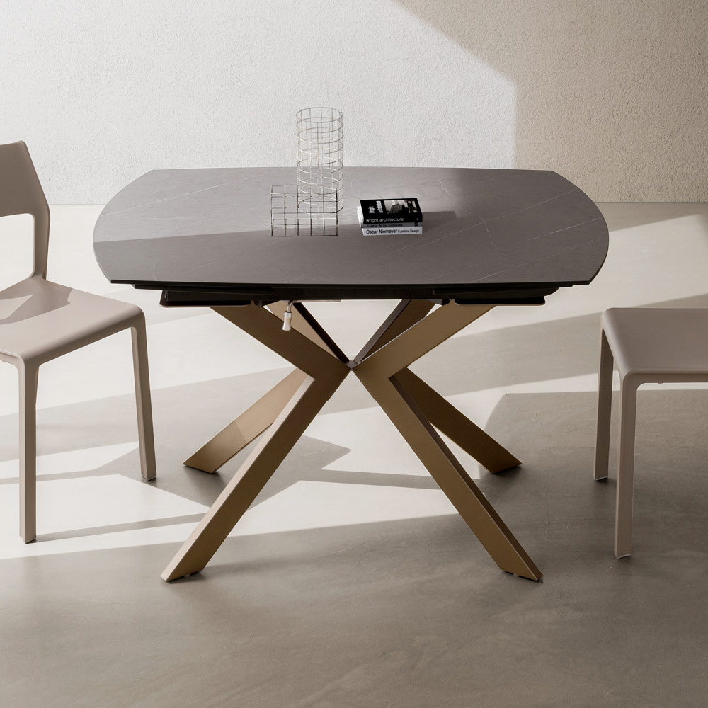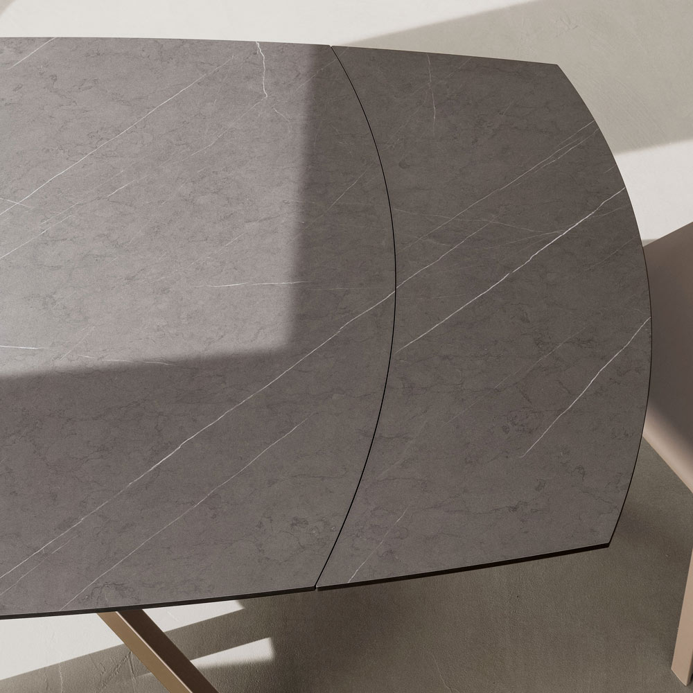 Blat HPL jest elegancki i wytrzymały . Dzięki mechanizmowi rozkładania stół rozkłada się łatwo i płynnie, przechodząc od kompaktowego kształtu do szerszego, idealnego do komfortowego witania gości.