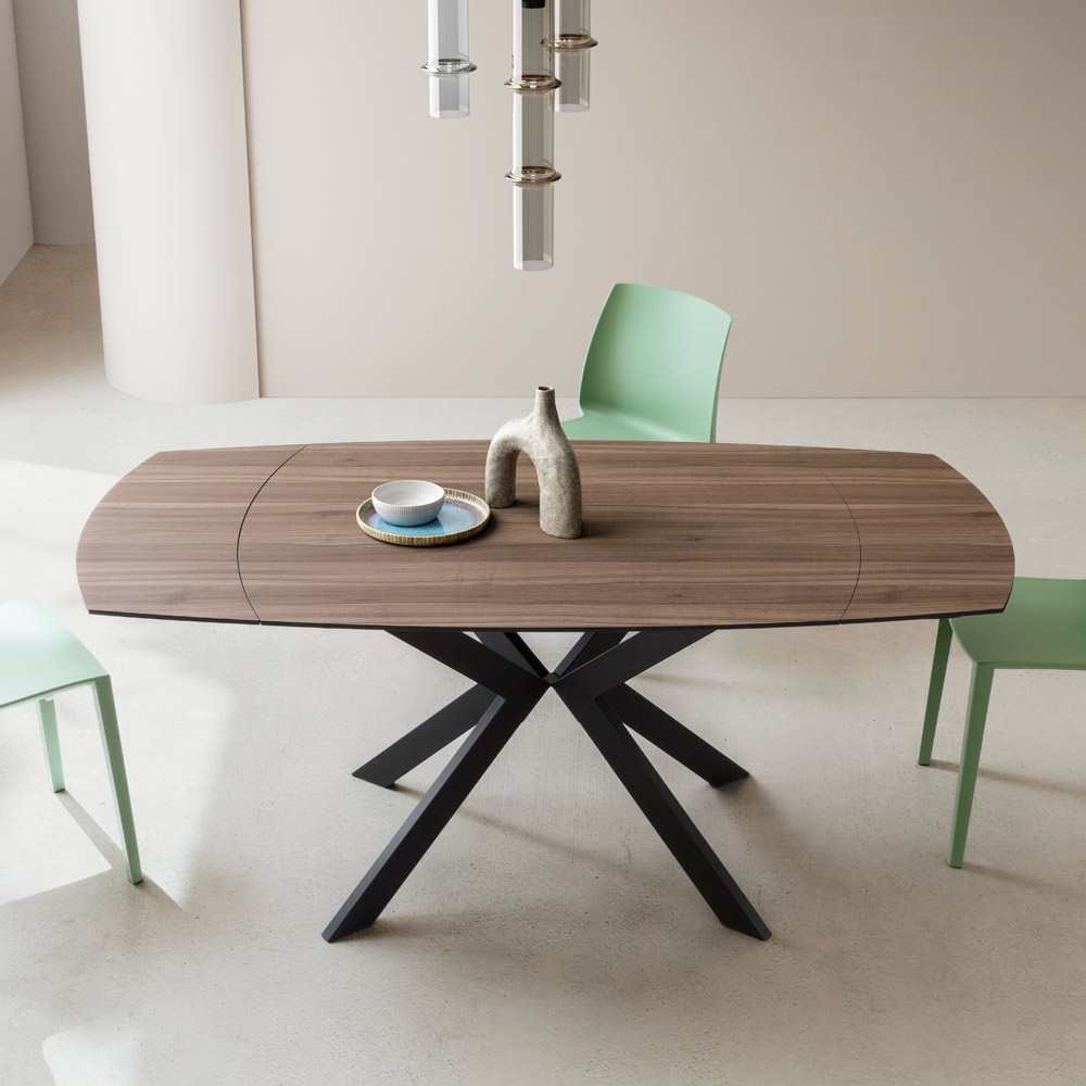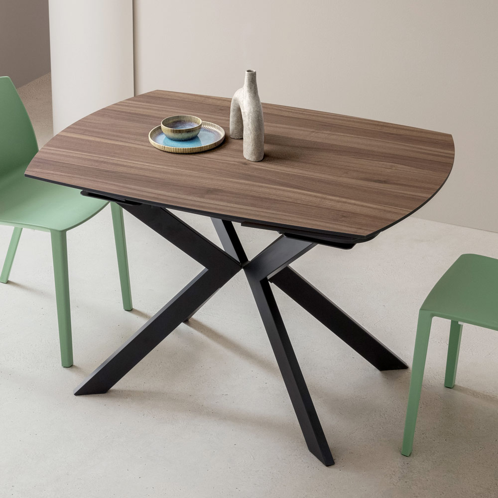 Malowana metalowa podstawa ze skrzyżowanymi nogami w kształcie gwiazdy nadaje stołowi solidności i charakteru, zmieniając go w prawdziwego bohatera przestrzeni.
