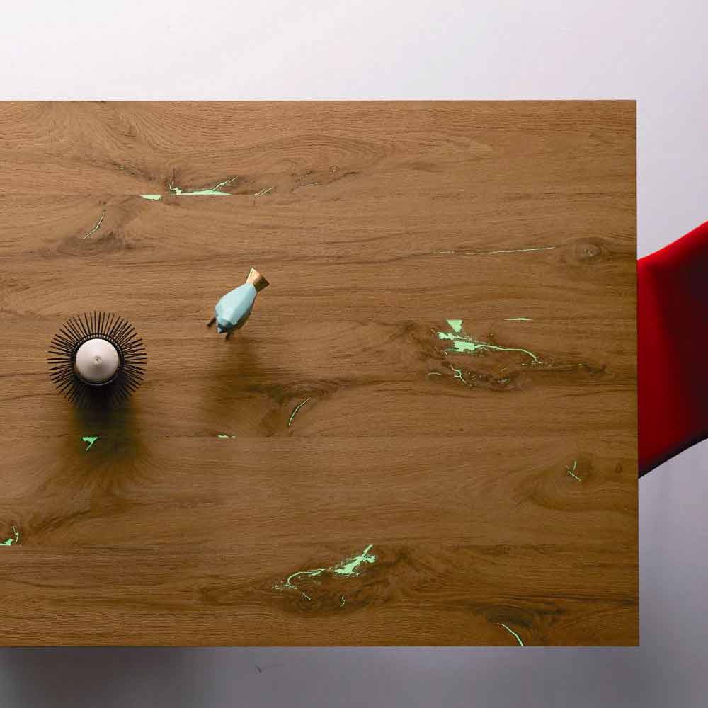 drewna fornirowanego o grubości 2,5 cm, który dzięki obecności 2 wyjmowanych przedłużek 47 cm, może osiągnąć długość 294 cm, dzięki czemu może pomieścić nawet 14 osób na obiady i kolacje z przyjaciółmi.