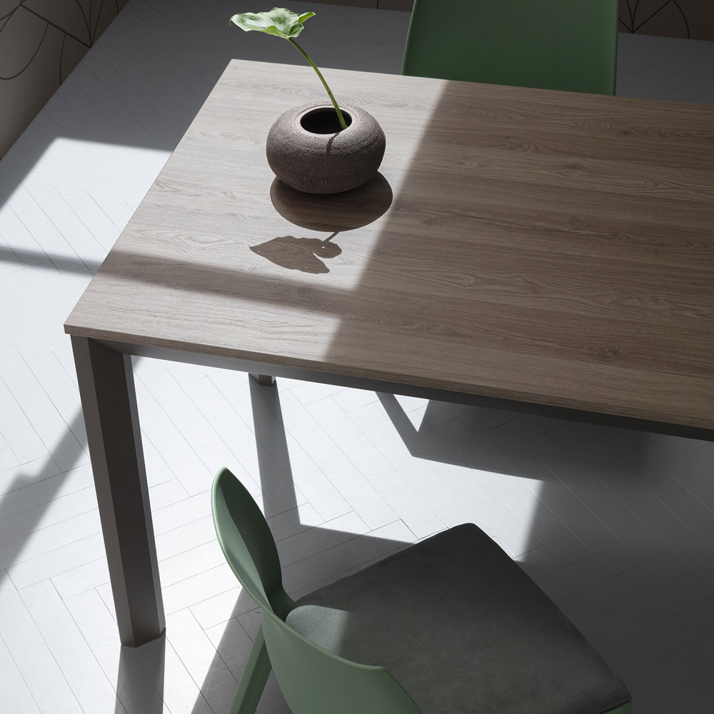 Rozkładany stół kuchenny z blatem z hpl i aluminiowymi nogami Wyprodukowano we Włoszech.