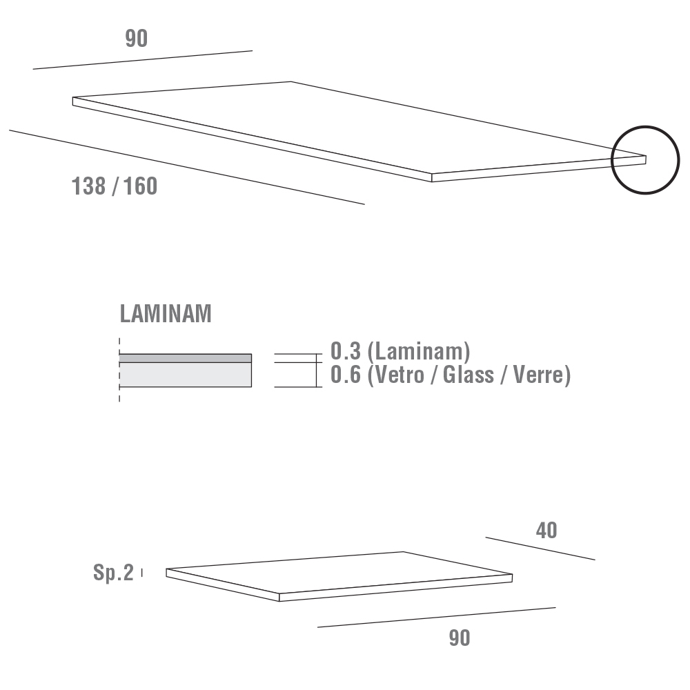 Uwaga : blat i podstawa są dostępne w szerokiej gamie różnych wykończeń. Nie gwarantuje się ciągłości włókien między blatem a przedłużeniem