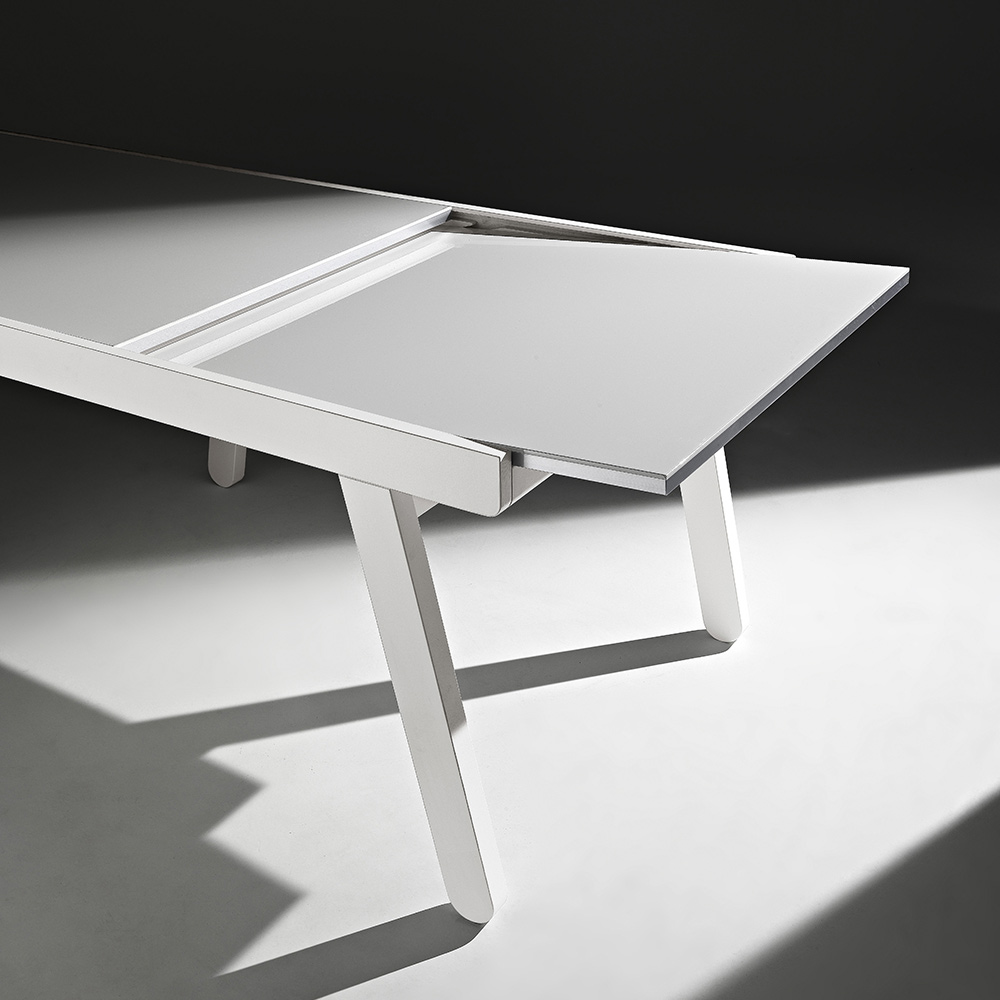 Stół kuchenny z blatem rozkładanym do 240 cm, wykonany z lakierowanego drewna Made in Italy.