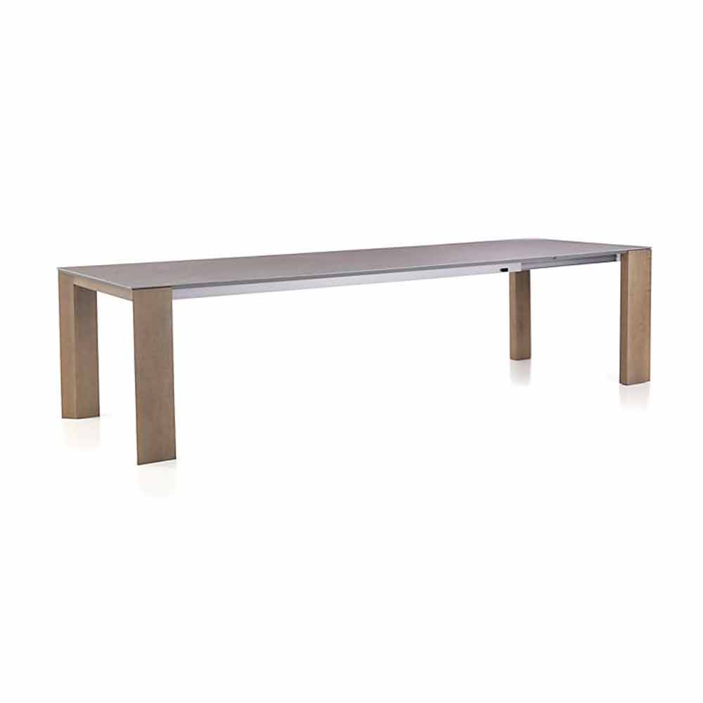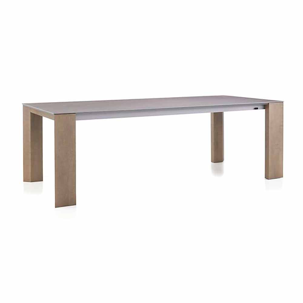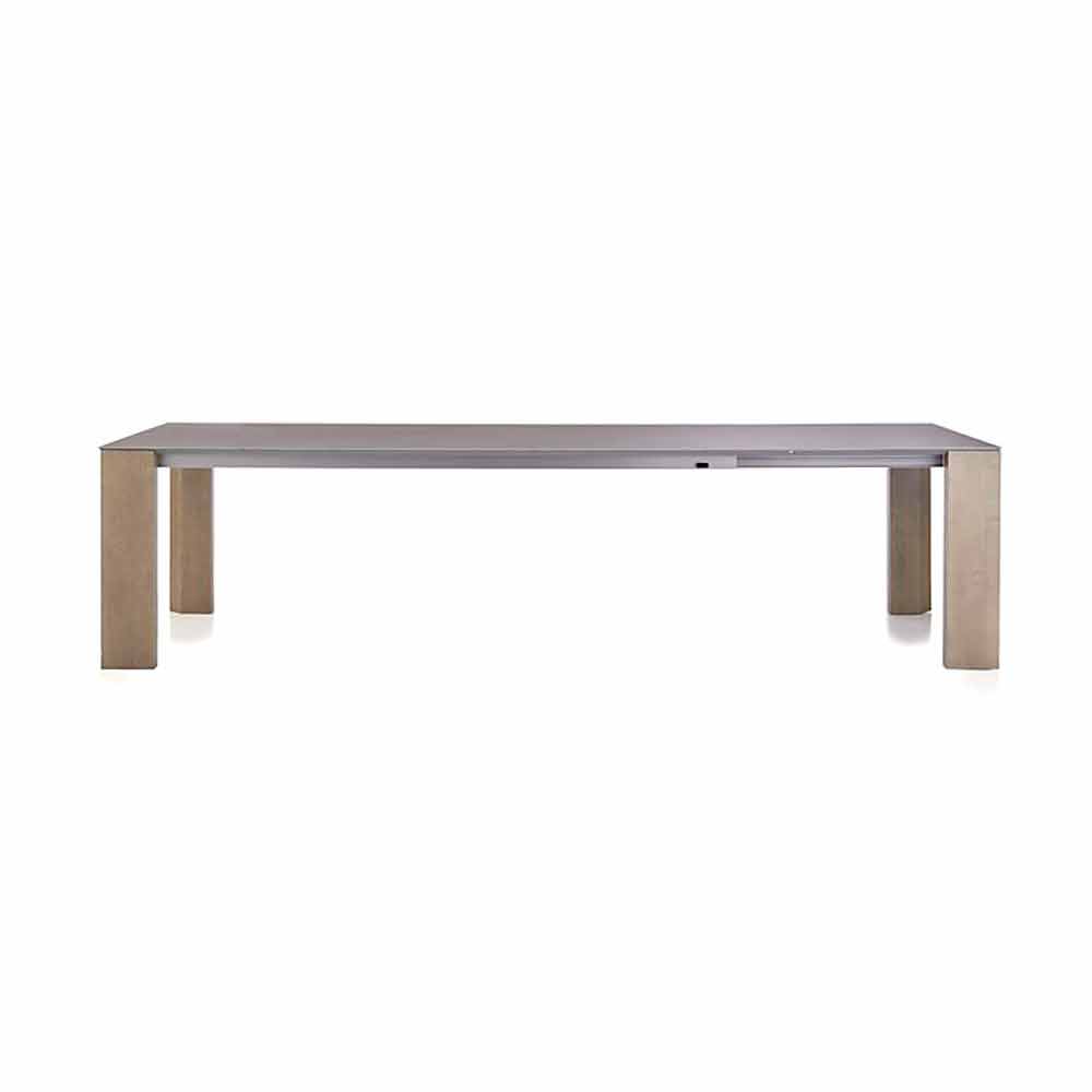Ideą tego typu kolekcji stołów, o naprawdę ważnych wymiarach do 300 cm długości, jest oferowanie łatwo dostępnej usługi rozszerzalności. Elegancja jest również obecna w wydłużonej pozycji. Ta prostota funkcji rozszerzalności jest możliwa dzięki zastosowaniu aluminiowej ramy ze zintegrowanymi prowadnicami, łączącej szlachetne tradycyjne materiały, takie jak drewno i ceramika, z nowoczesnym wzornictwem, które utrzymuje się w czasie.