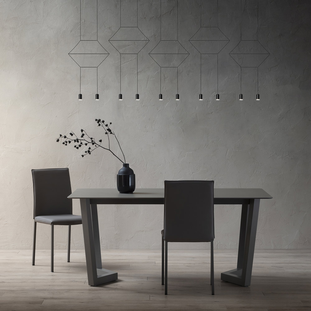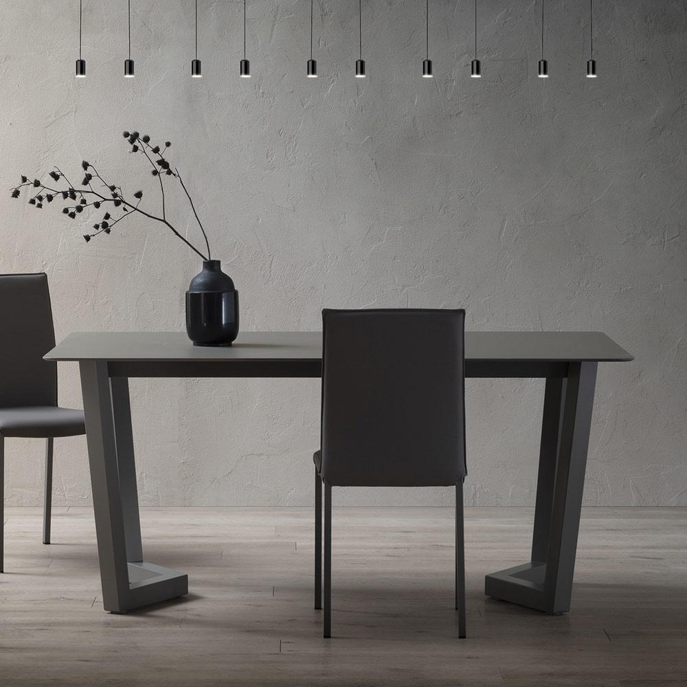 Rozkładany stół do jadalni z warstwowego materiału fenix z metalową podstawą Wyprodukowano we Włoszech.
