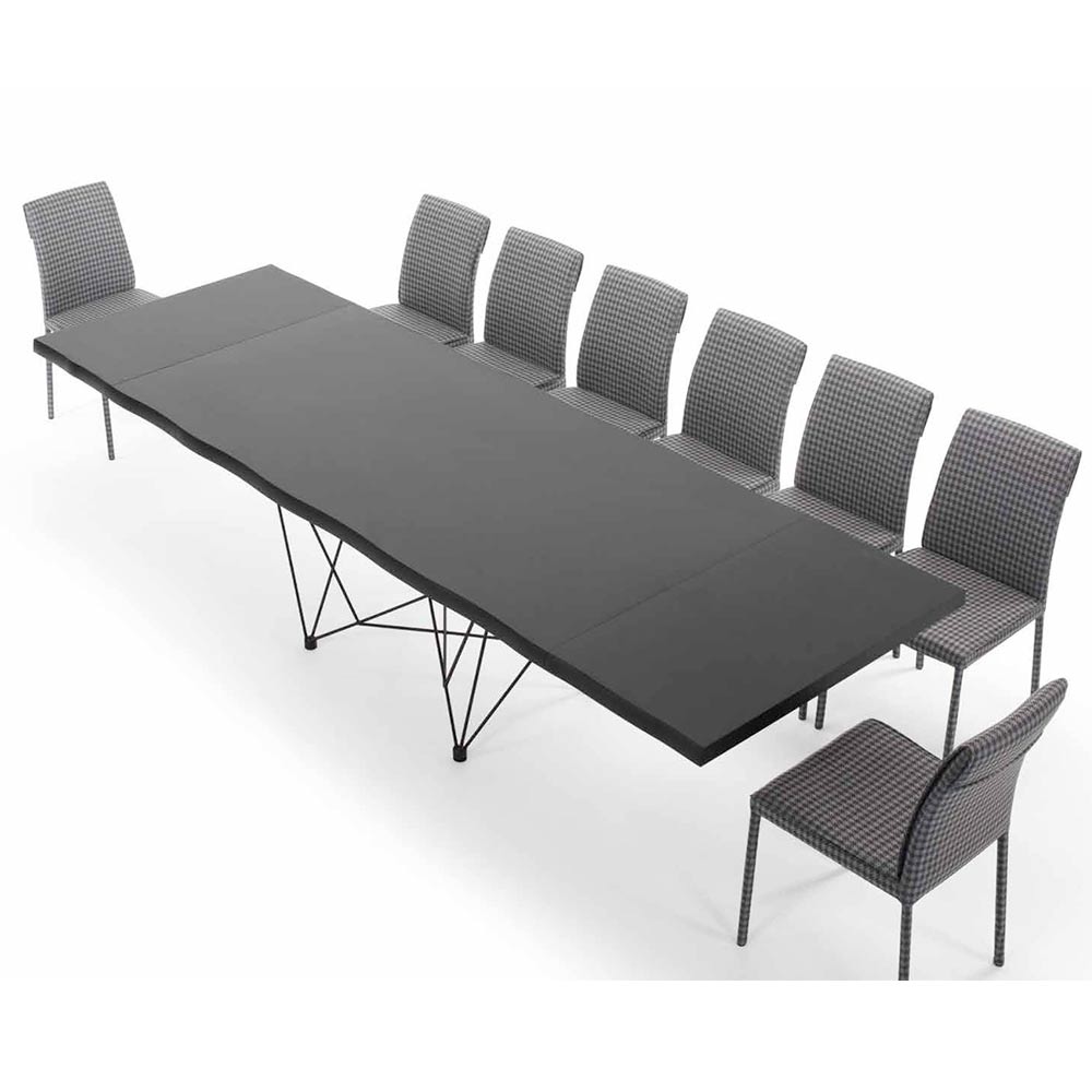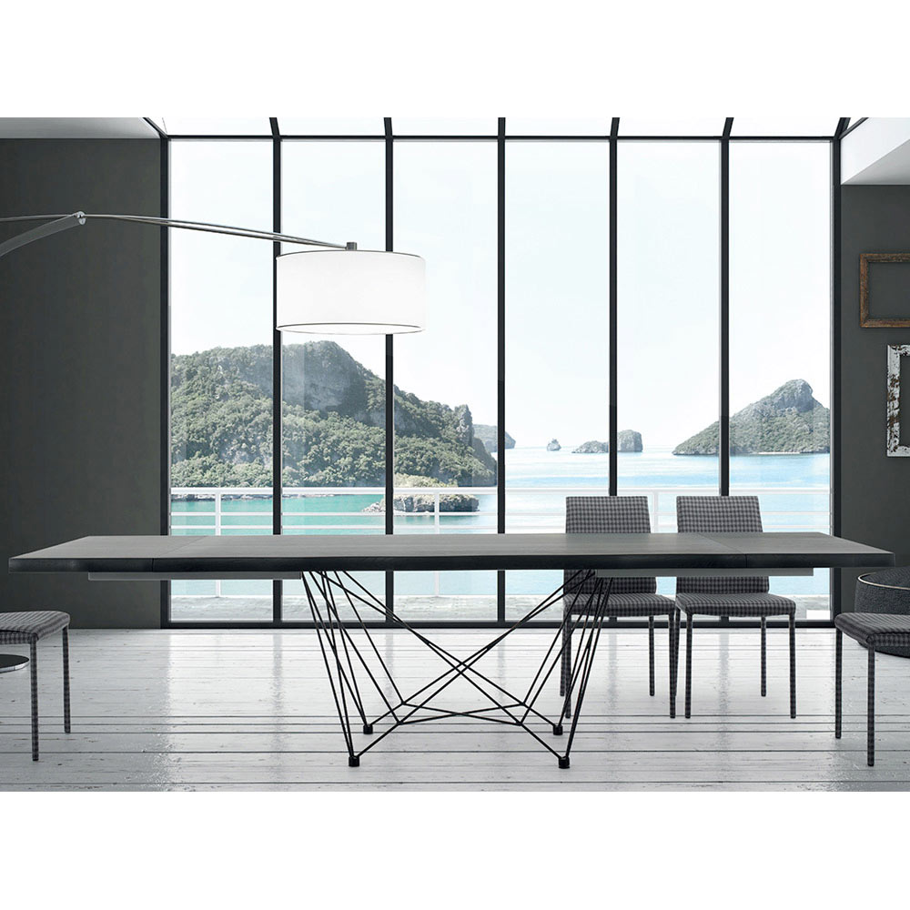 Nowoczesny stół rozkładany do 300 cm z blatem z drewna fornirowanego i podstawą ze stali w kolorze czarnym, wyprodukowany we Włoszech.