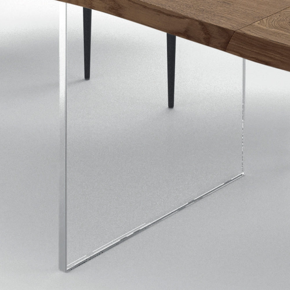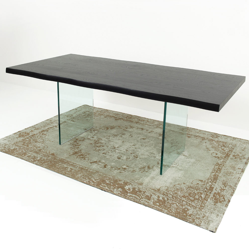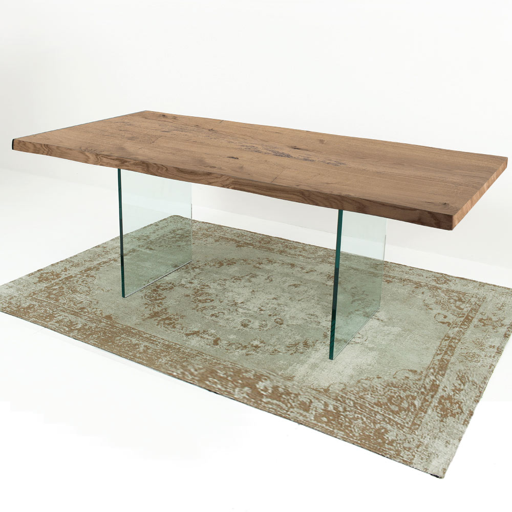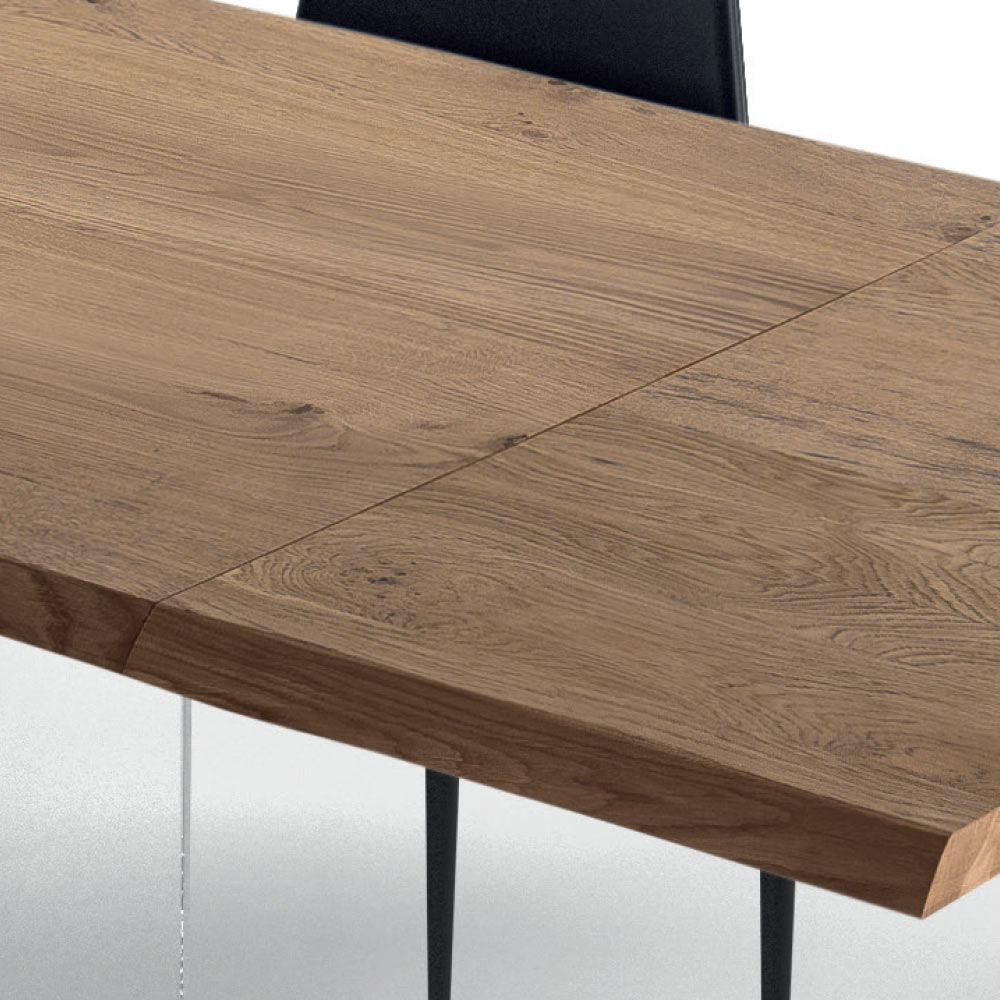 Rozkładany stół do jadalni o długości do 300 cm z blatem z fornirowanego drewna i szklaną podstawą wyprodukowaną we Włoszech.