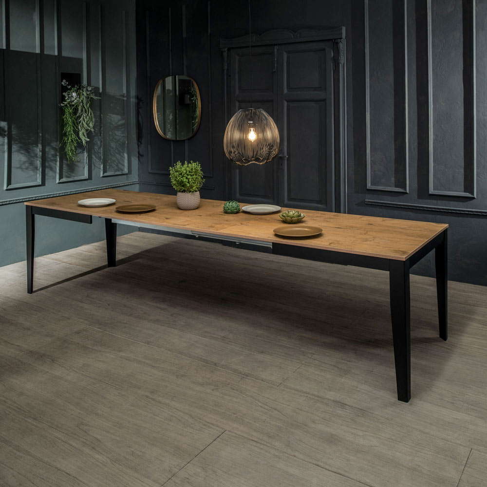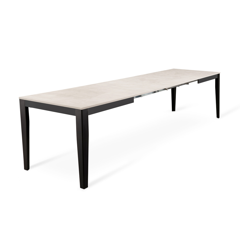 dużą rozciągliwością i stabilnością, może pomieścić do 14 osób i jest absolutnym bohaterem strefy dziennej, zdolnym nieść ze sobą różne emocje, centralnym punktem domu, gdzie zaczyna się i kończy dzień. Geometryczne i minimalistyczne linie gustownie łączą się zarówno ze stylami współczesnymi, jak i bardziej rustykalnymi i retro.