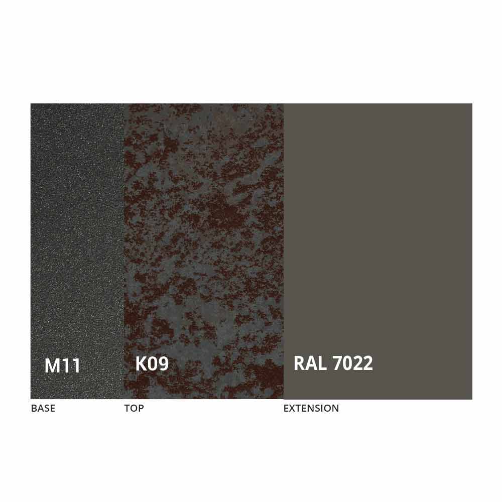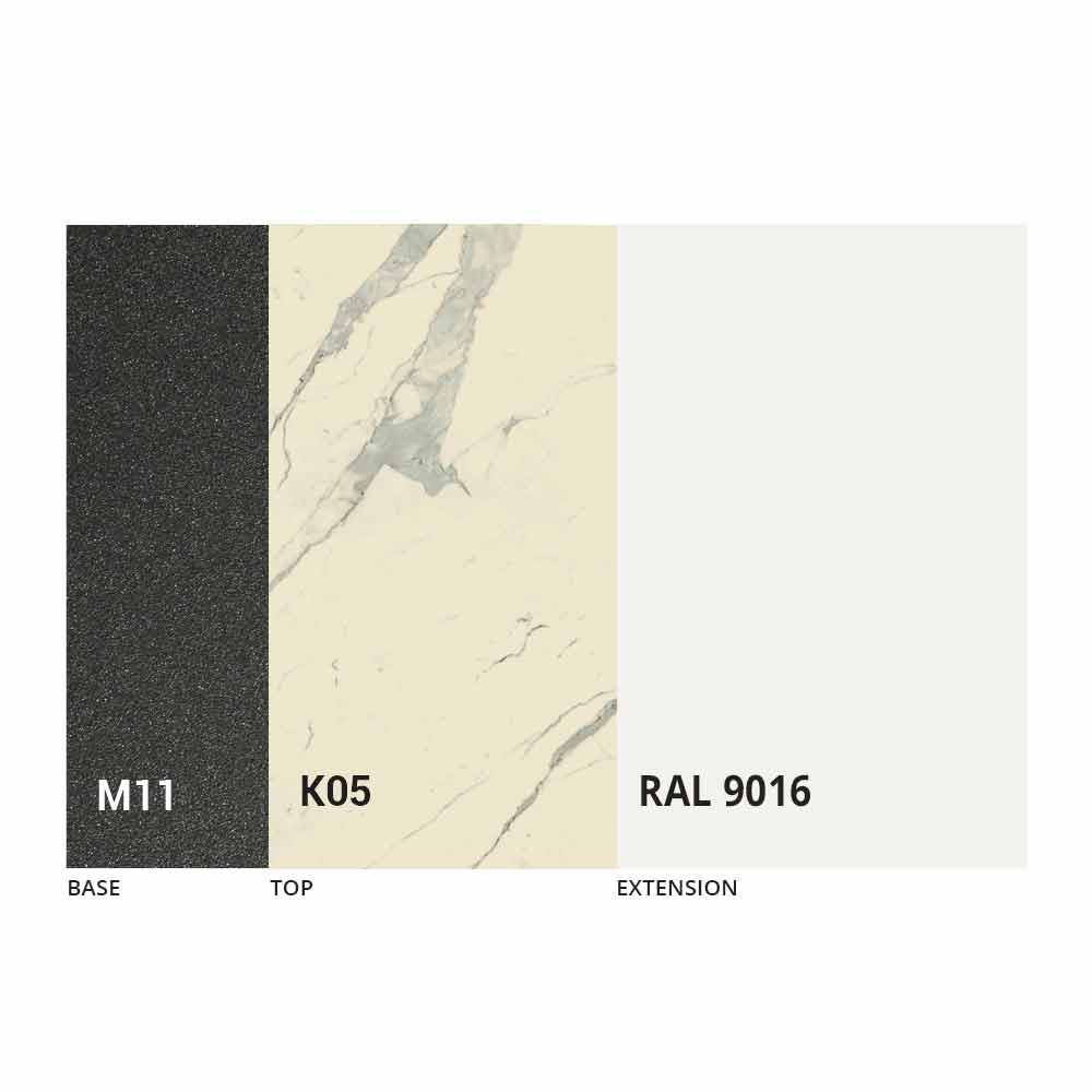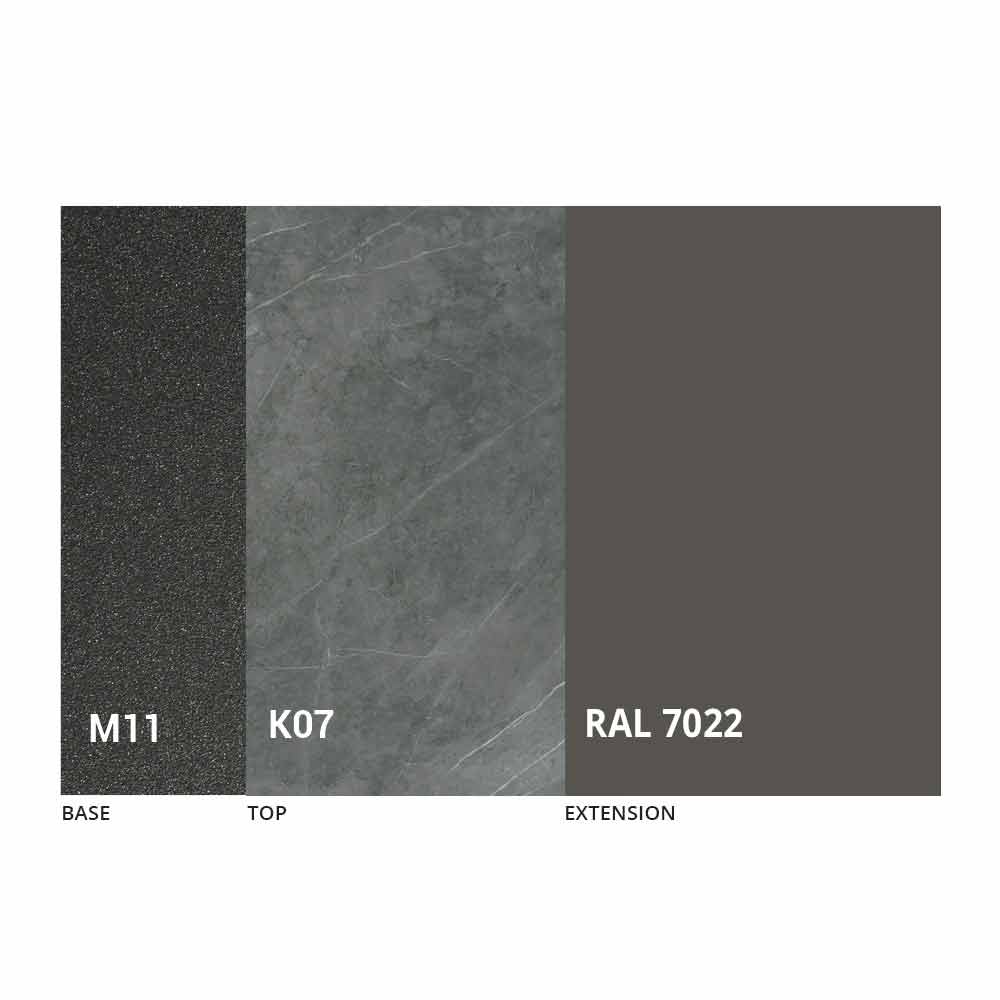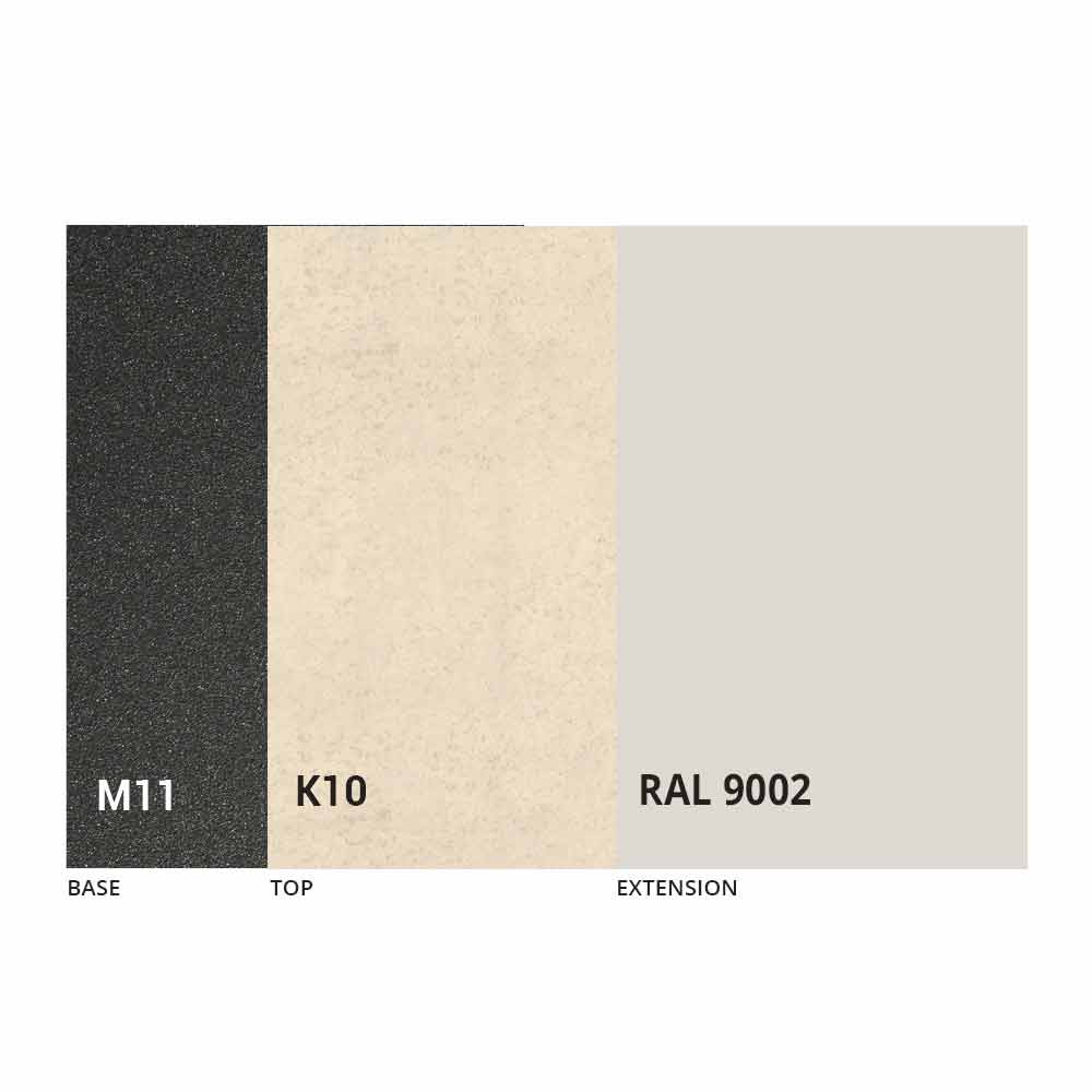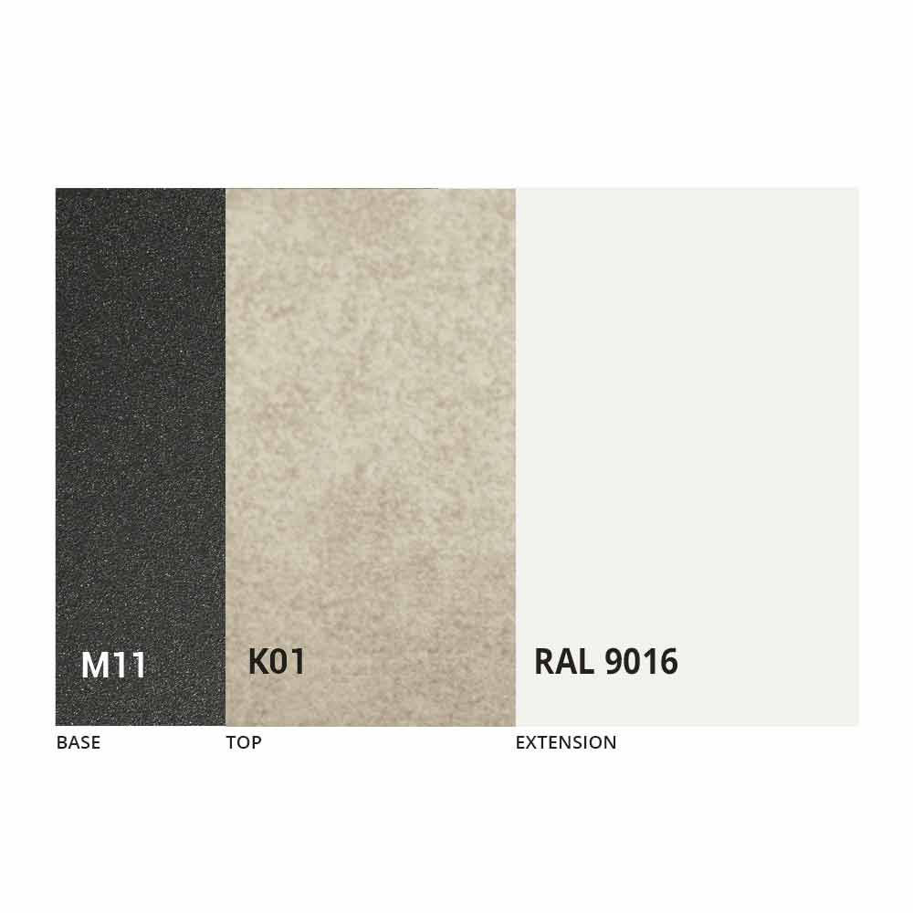Blat i podstawę stołu można dostosować za pomocą różnych materiałów i próbnych wykończeń lub lakieru RAL. Aby uzyskać informacje, skontaktuj się z nami za pomocą odpowiedniego formularza „