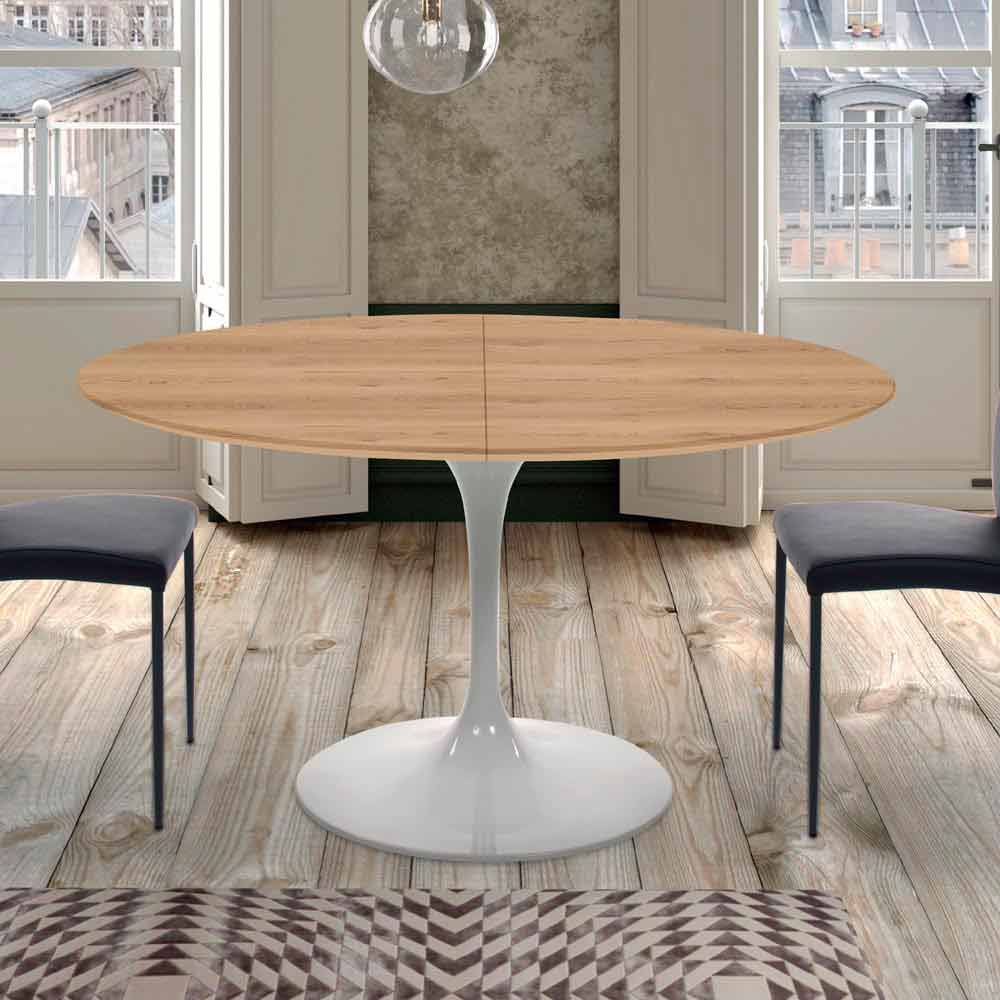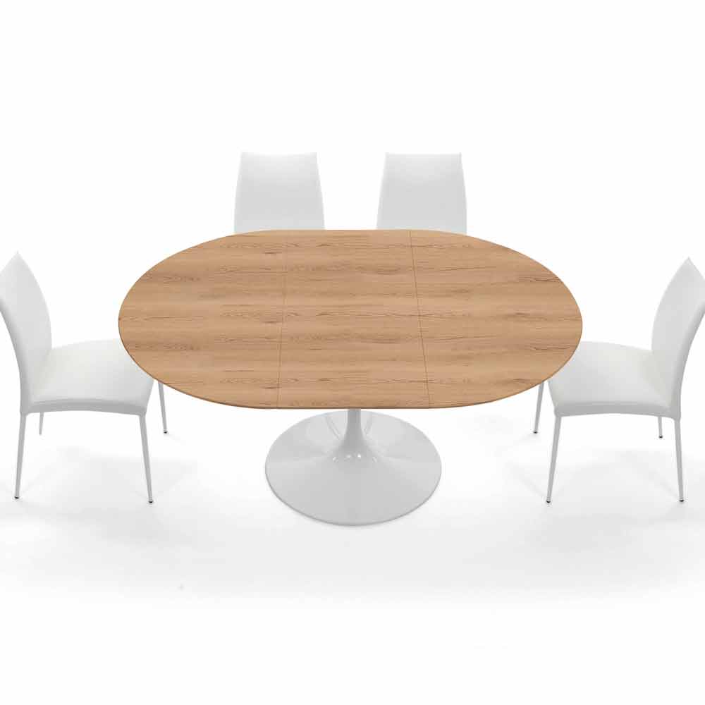 rozkładany blat , który dzięki zewnętrznemu przedłużeniu o 50 cm daje możliwość zakwaterowania nawet 8 osób, zajmując po zamknięciu mniejszą przestrzeń. Dotyk charakteryzujący stół, czyniący go wyjątkowym i nadającym mu