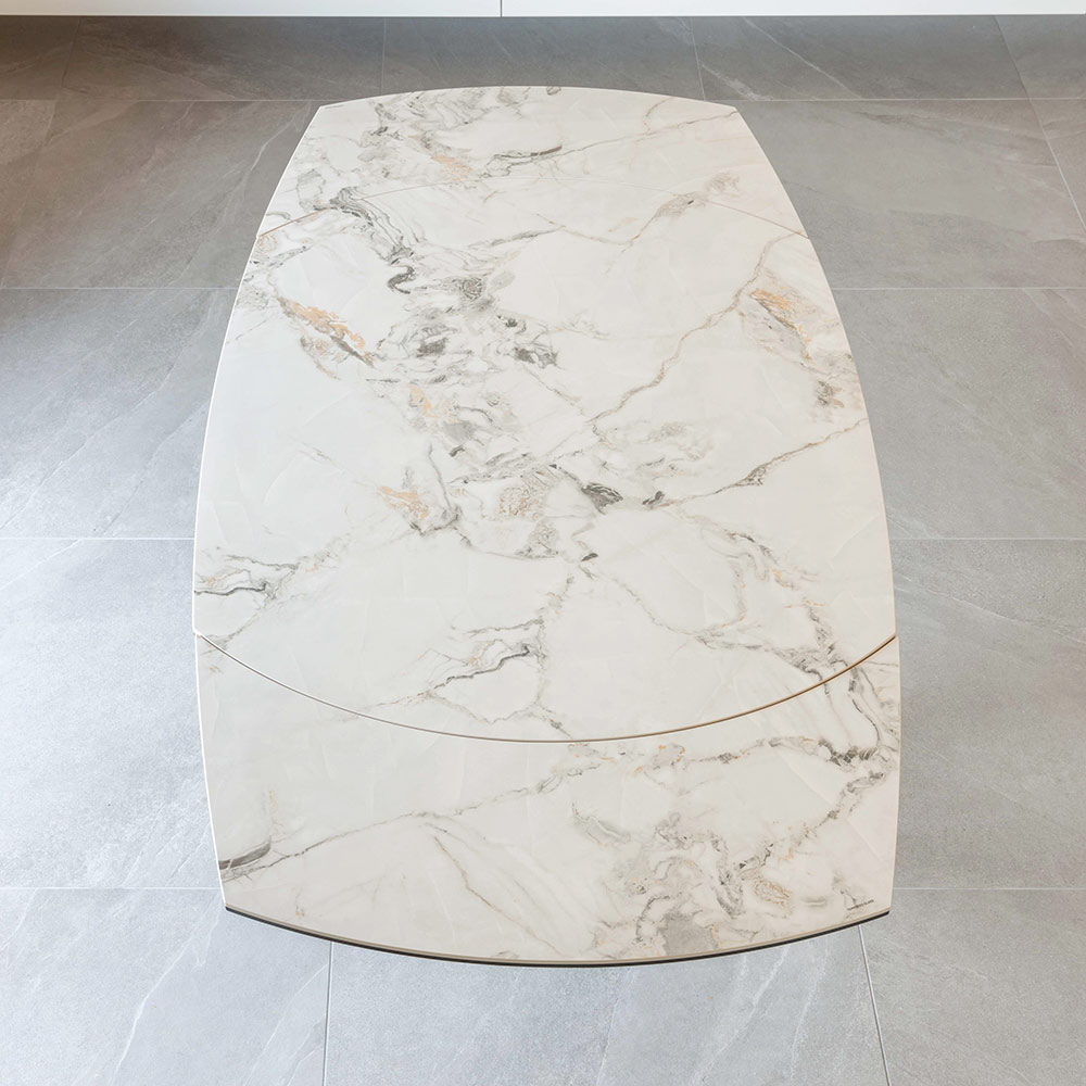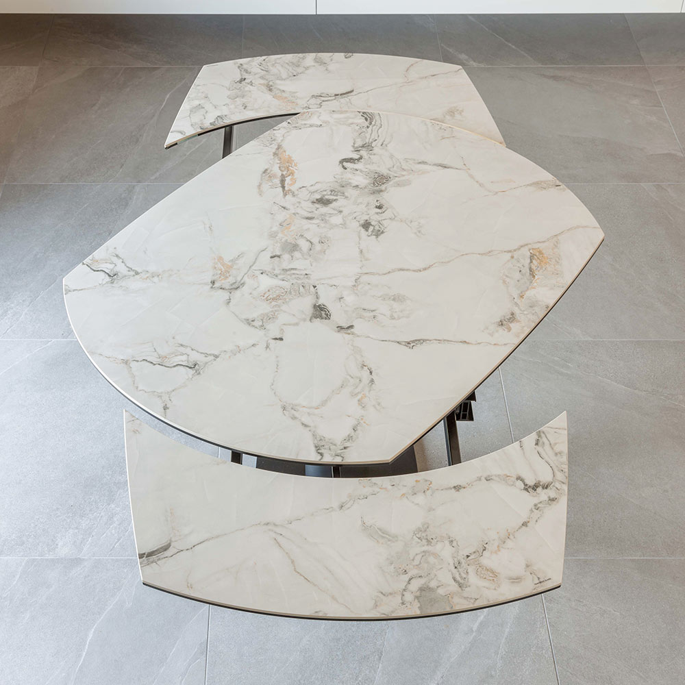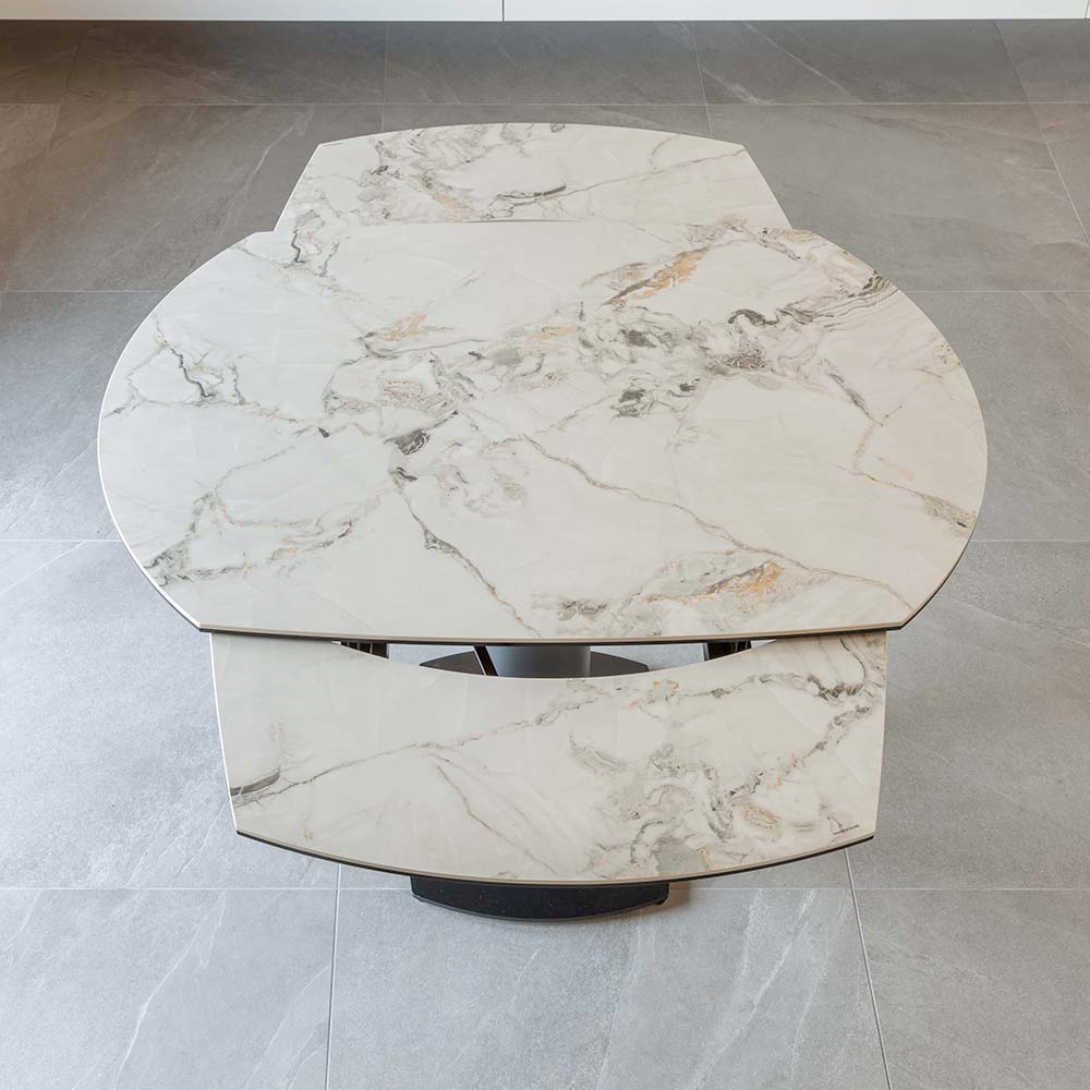 Rozkładany stół do salonu wykonany z ceramiki szklanej i metalu