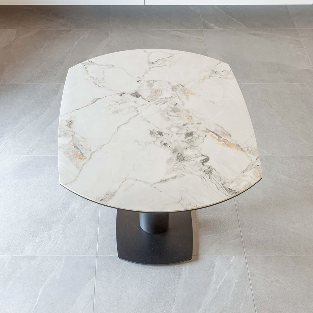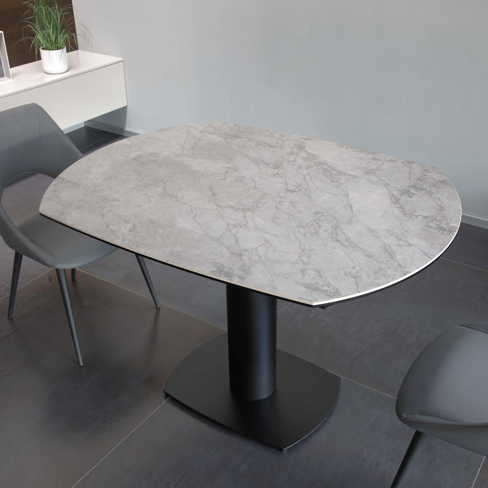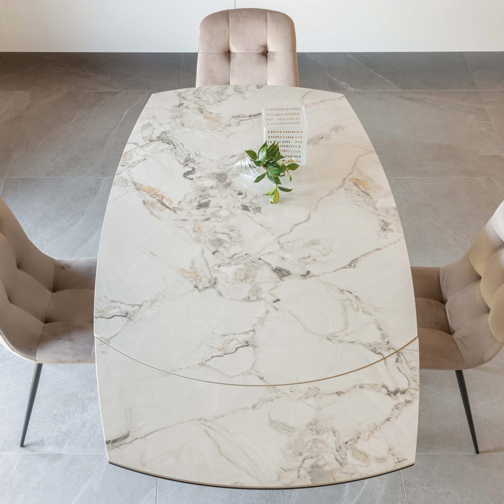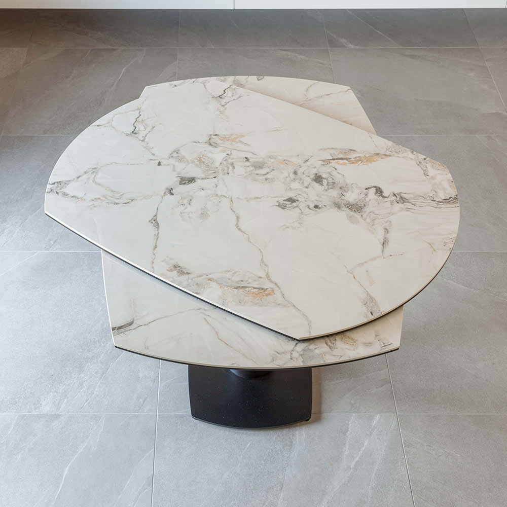 Rozkładany stół do salonu wykonany z ceramiki szklanej i metalu