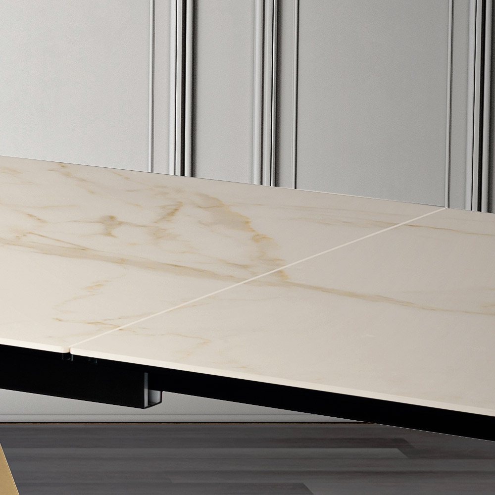 To dzieło to znacznie więcej niż rozkładany stół : to dzieło sztuki, które swoją scenograficzną prezencją definiuje każde otoczenie. Powierzchnia przemawia językiem luksusu i natury, obiecując, że każdy posiłek zamieni się w wydarzenie.