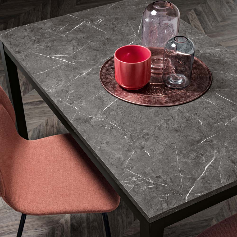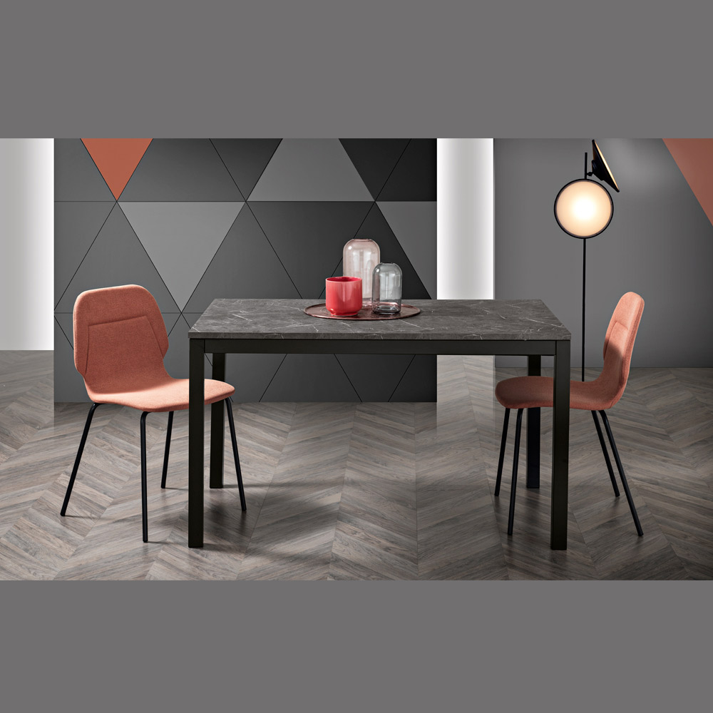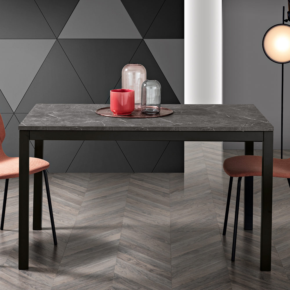 wyprodukowany we Włoszech. Odkryj współczesny urok i ponadczasowe wyrafinowanie tego stołu jadalnego . Majestatyczna powierzchnia z melaminy wsparta solidną konstrukcją z eleganckimi metalowymi nogami . Zmień każdy posiłek w wyjątkową okazję.