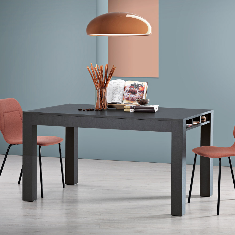 Mechanizm wysuwania jest płynny i łatwy w manewrowaniu, zaprojektowany tak, aby zmaksymalizować przestrzeń bez utraty estetycznego piękna . Nogi zapewniają solidność wizualną i strukturalną oraz przypominają o jakości rzemieślniczej , która charakteryzuje najlepsze produkty wytwarzane we Włoszech .