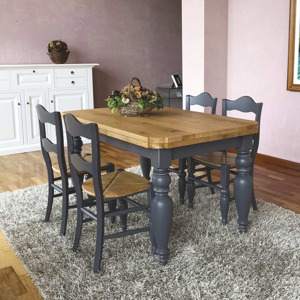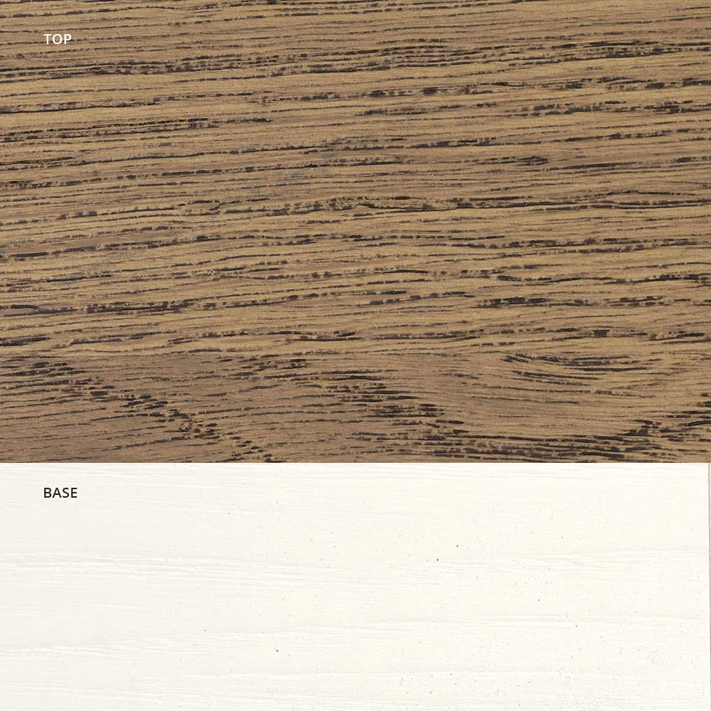 - Blat z naturalnego dębu sękanego + podstawa lakierowana w kolorze grafitowym z efektem przetarcia