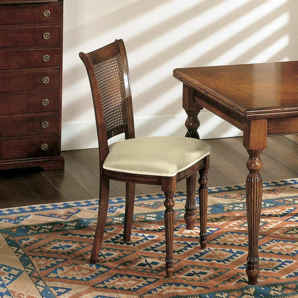 - Krzesło: struktura patynowanego orzecha włoskiego - siedzisko z tkaniny juma