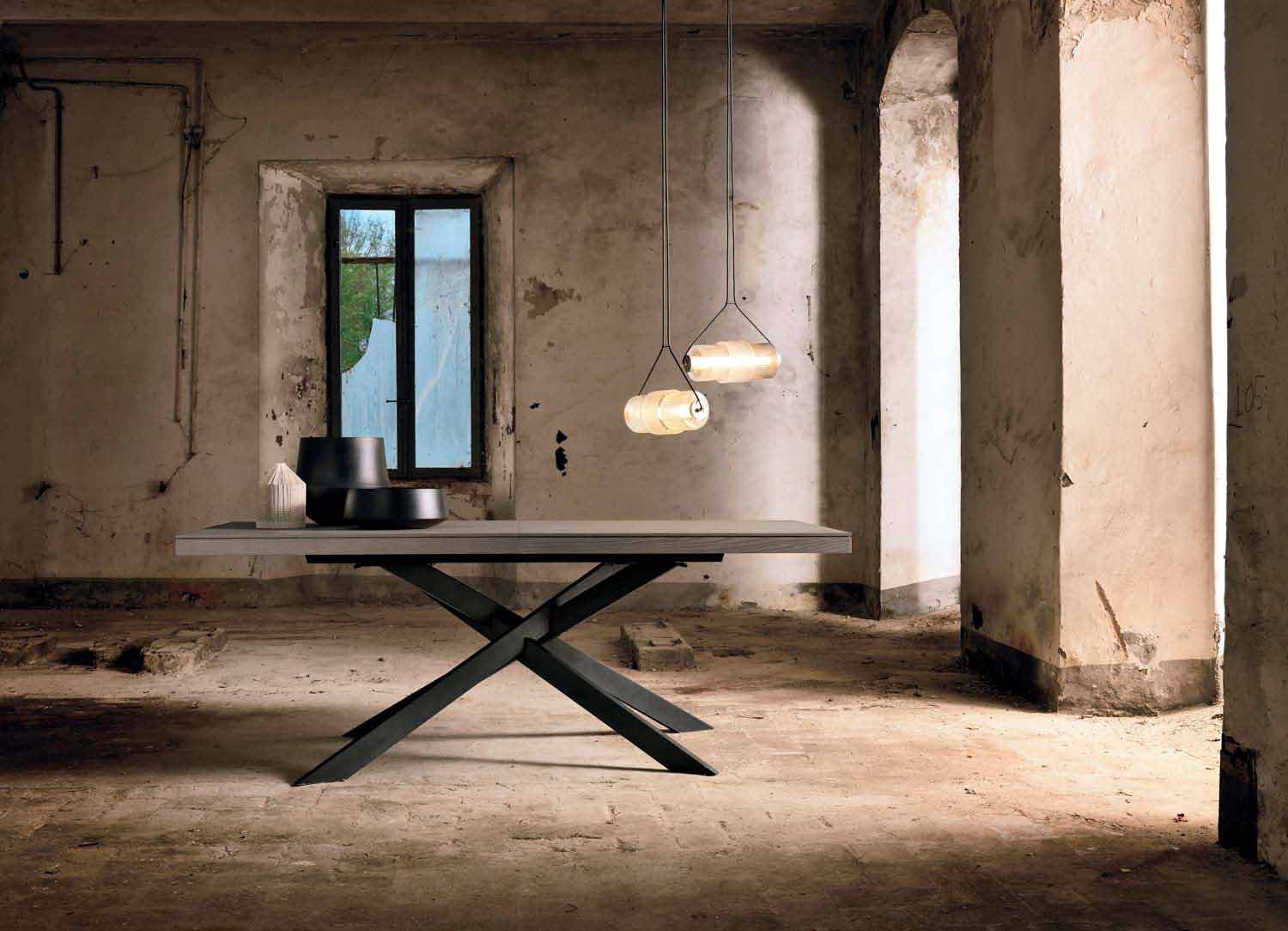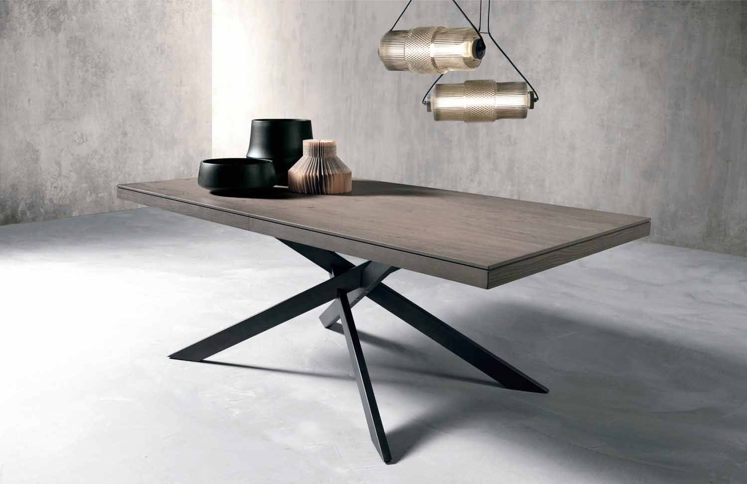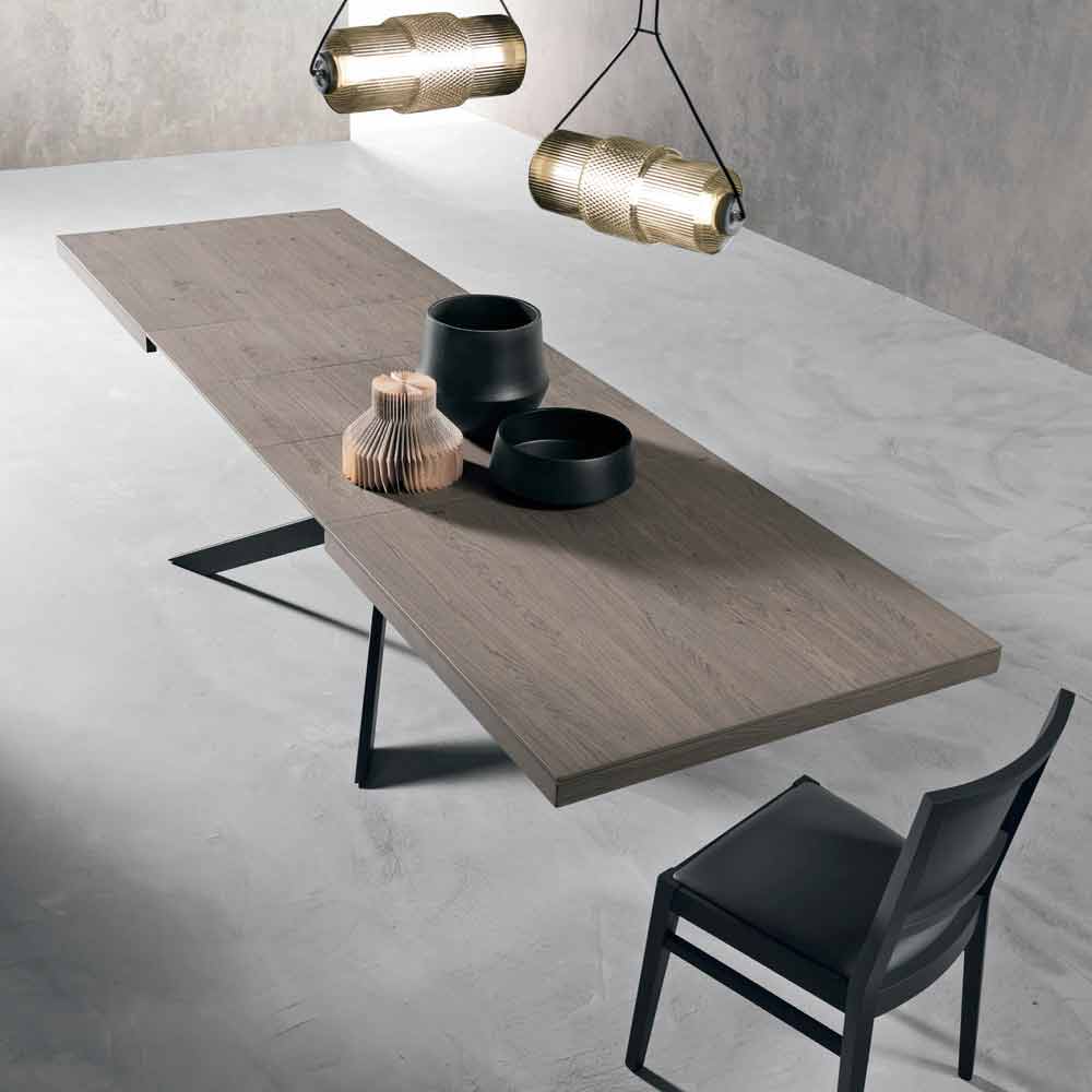 sękatego forniru dębowego; z centralnego przesuwania można wyciągnąć 3 przedłużenia o długości 45 cm każde znajdujące się wewnątrz ramy.