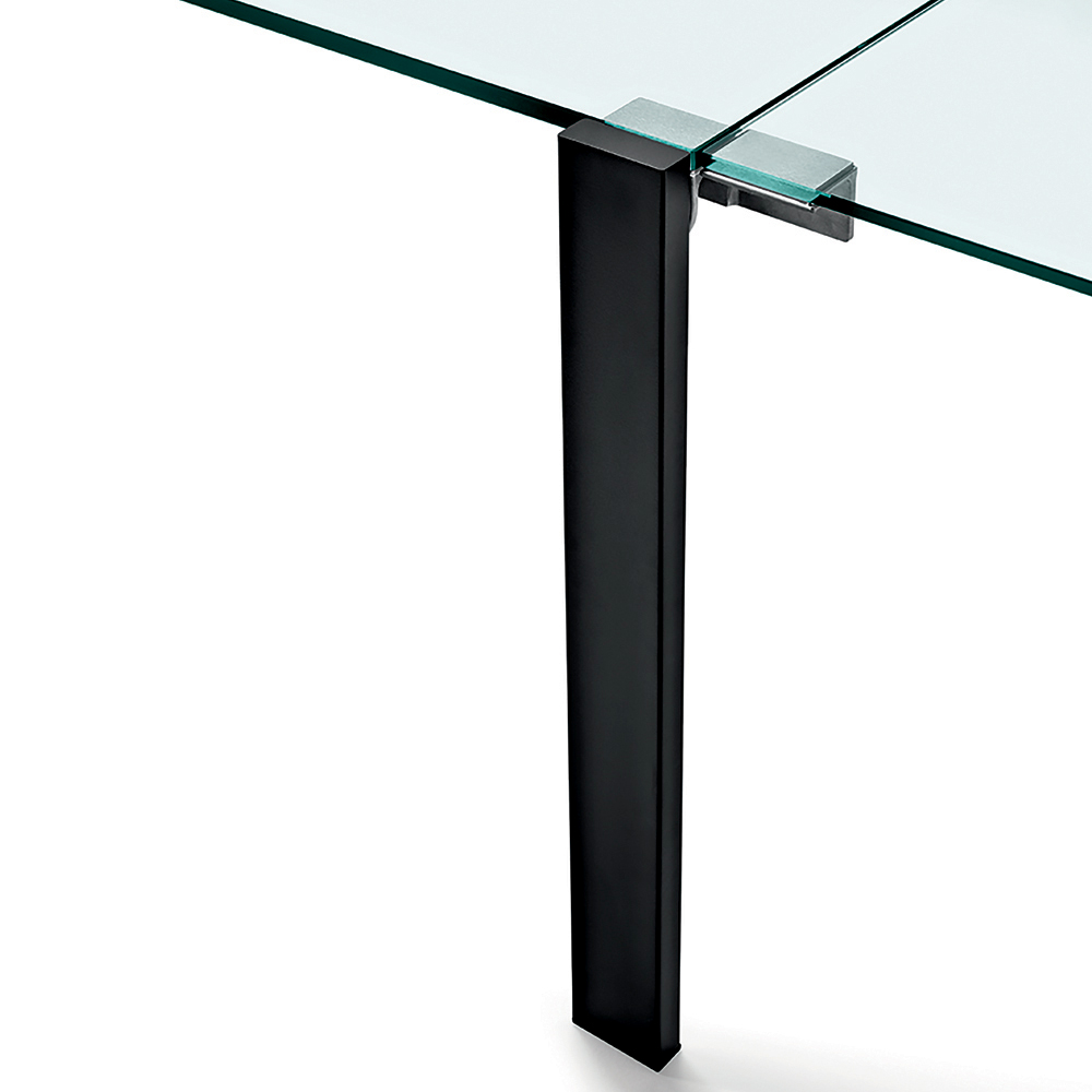 Bardzo przejrzysty szklany stół rozkładany do 170 cm z metalową podstawą, wyprodukowany we Włoszech.