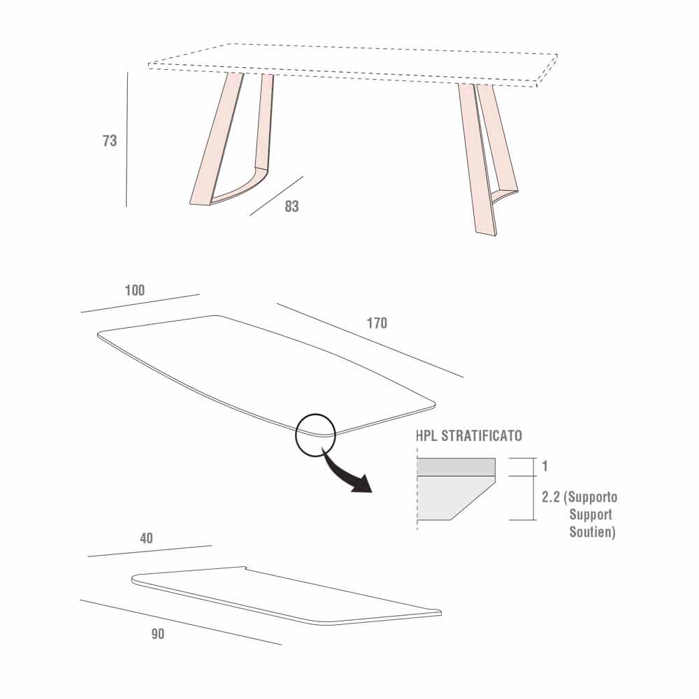 Uwaga : blat i podstawa są dostępne w szerokiej gamie różnych materiałów i wykończeń. Nie gwarantuje się ciągłości włókien między blatem a przedłużeniem