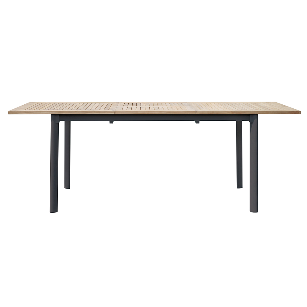 Stół posiada możliwość rozłożenia , dzięki czemu z łatwością dostosujesz go do swoich potrzeb, niezależnie od tego, czy organizujesz kameralną kolację, czy też duży lunch w gronie przyjaciół i rodziny. Połączenie drewna tekowego i aluminium jest nie tylko estetyczne, ale także niezwykle praktyczne, dzięki czemu stół ten jest idealnym wyborem na każdą okazję na świeżym powietrzu.