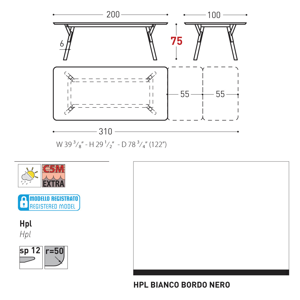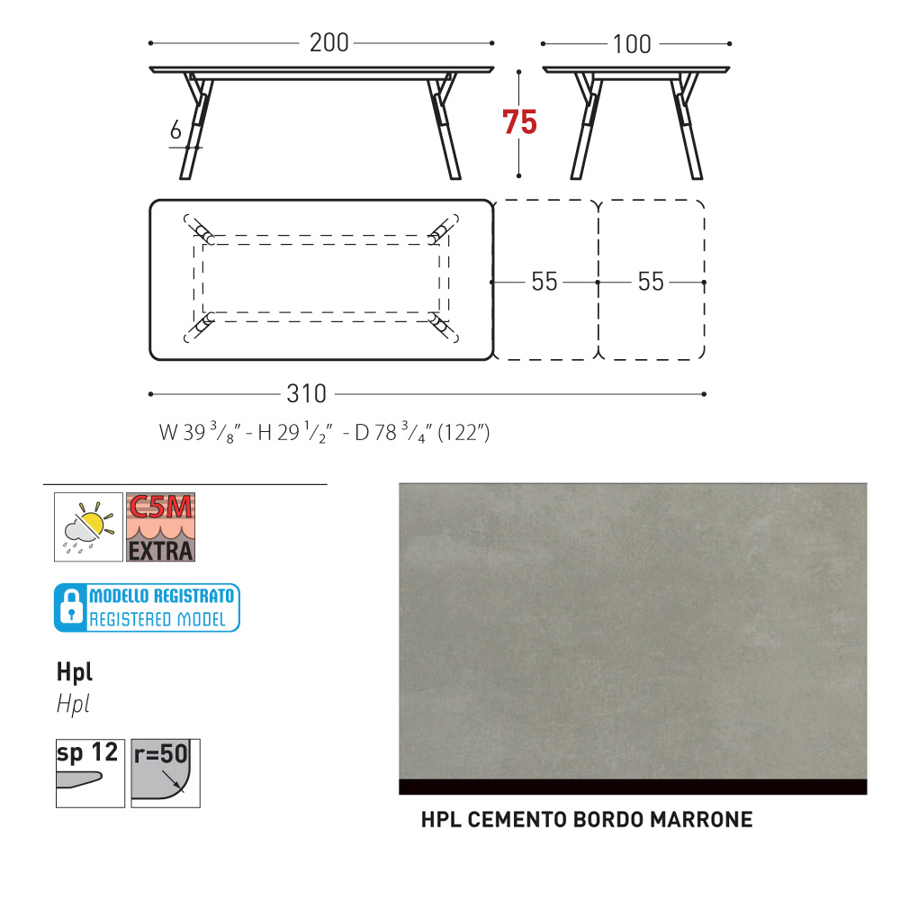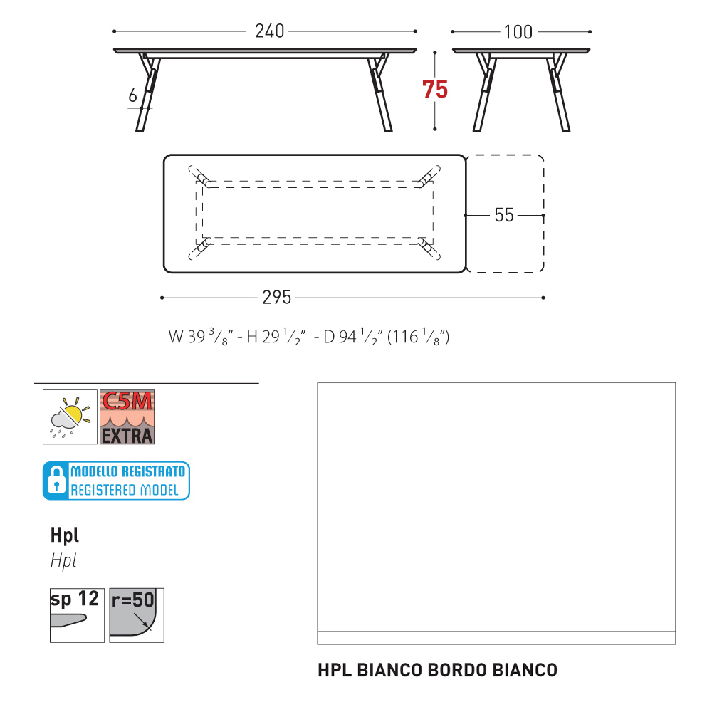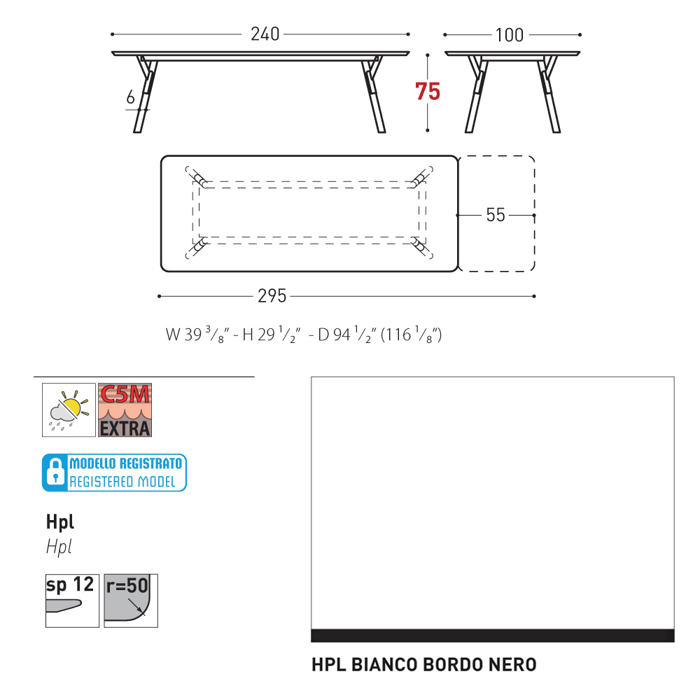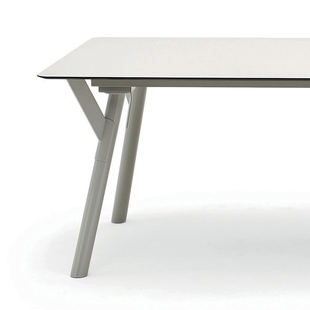 Link to nowoczesny stół o konstrukcji (wspornik + nogi) z malowanej stali nierdzewnej. Blat dostępny jest w HPL (grubość 12 mm) lub w drewnie tekowym (grubość 30 mm). Dzięki wszechstronnej konstrukcji może być używany zarówno jako rozkładany stół zewnętrzny, jak i do wyposażenia wnętrz. Dostępne są różne wykończenia, za pomocą których można dostosować konstrukcję, nogi i blat stołu.