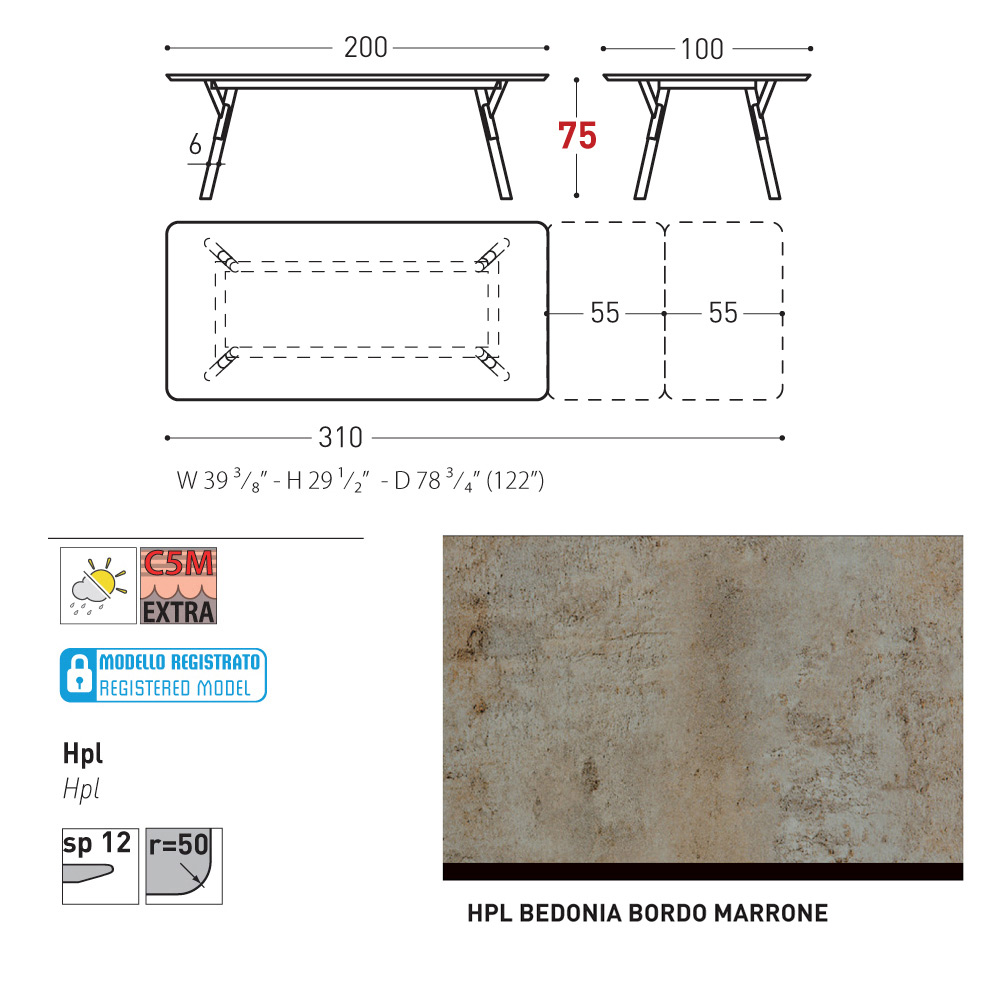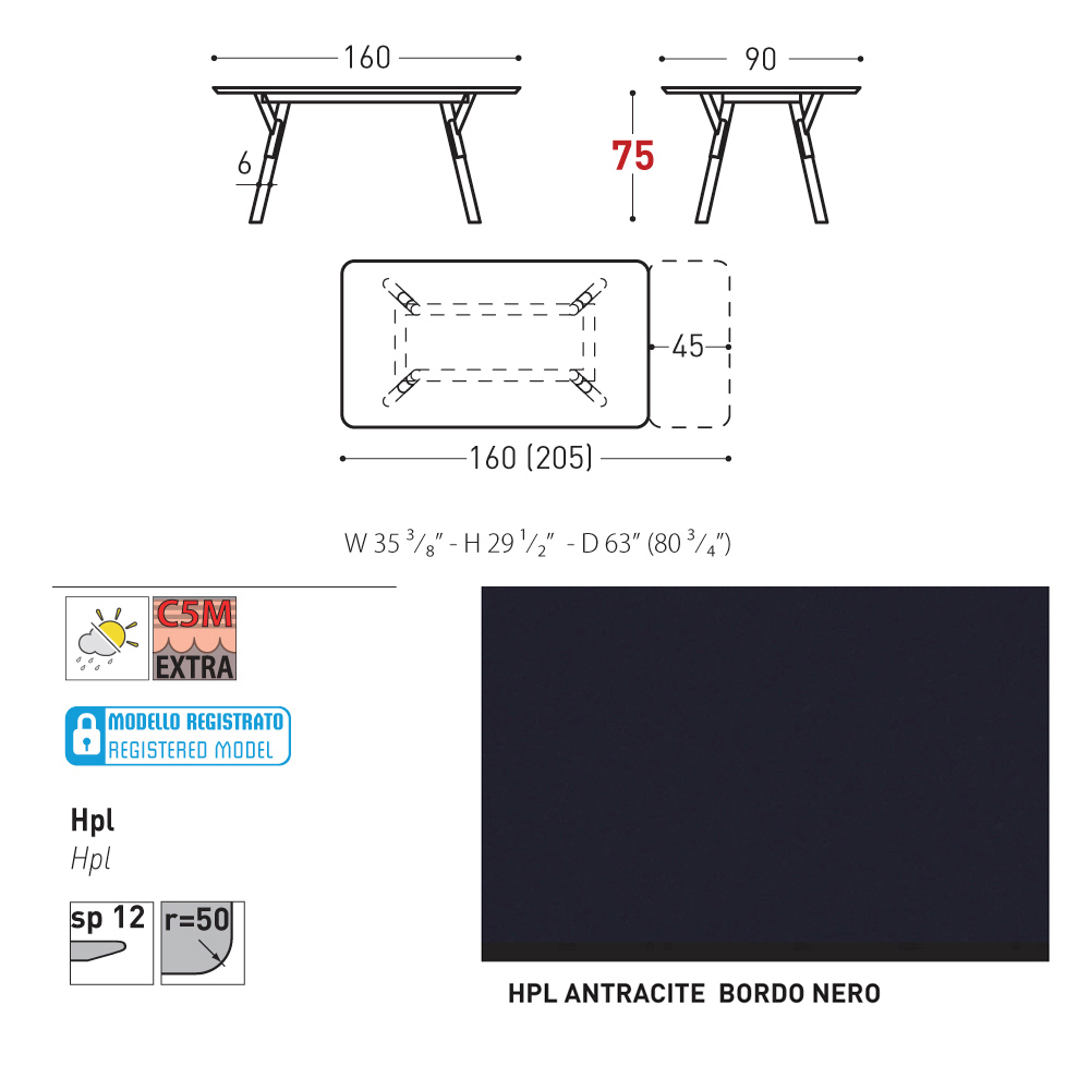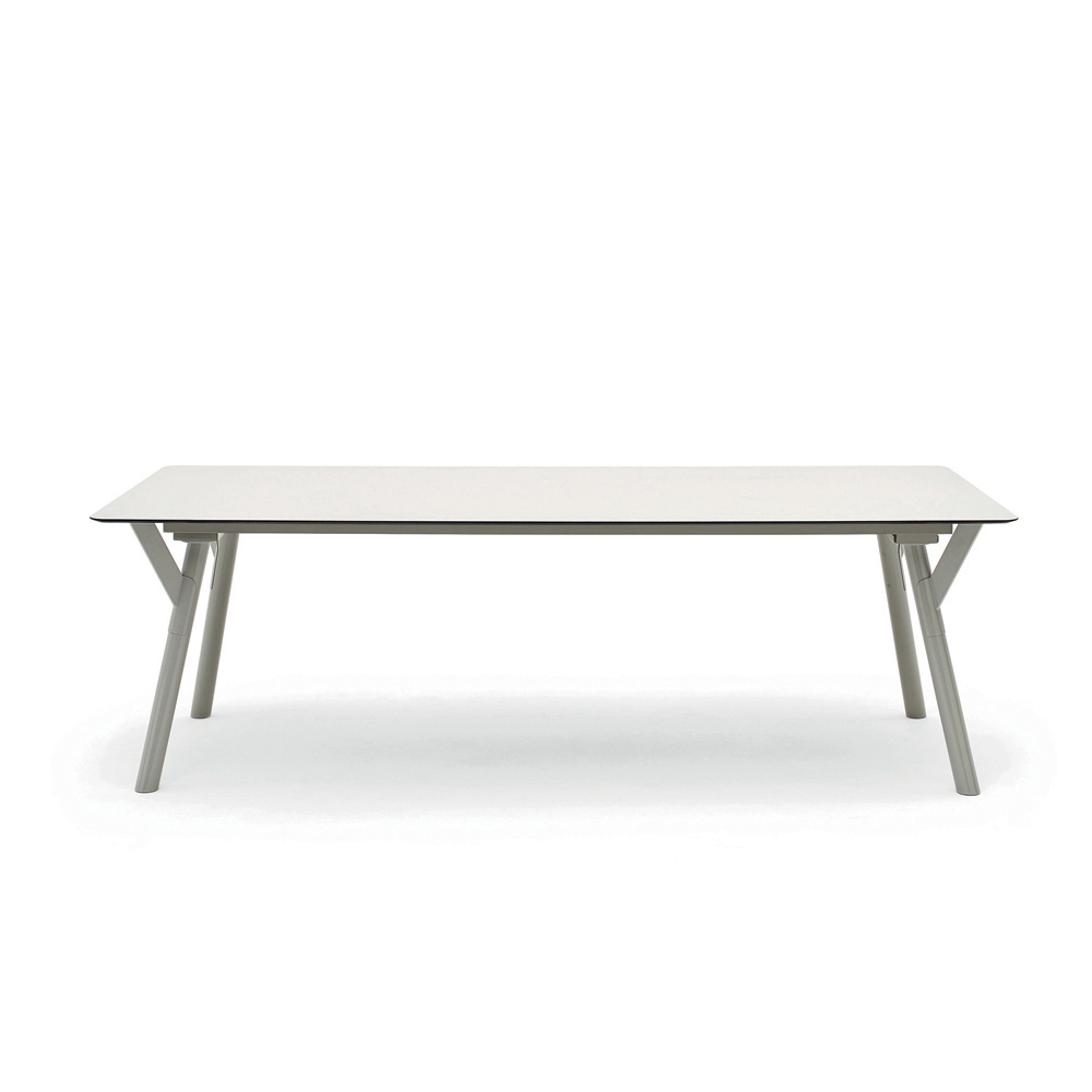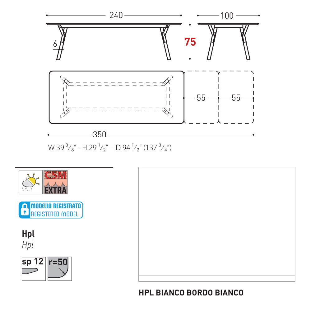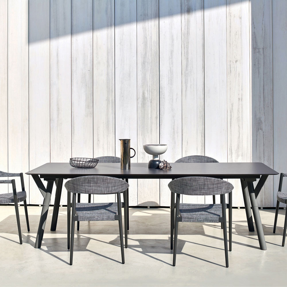 Link to nowoczesny stół o konstrukcji (wspornik + nogi) z malowanej stali nierdzewnej. Blat dostępny jest w HPL (grubość 12 mm) lub w drewnie tekowym (grubość 30 mm). Dzięki wszechstronnej konstrukcji może być używany zarówno jako rozkładany stół zewnętrzny, jak i do wyposażenia wnętrz. Dostępne są różne wykończenia, za pomocą których można dostosować konstrukcję, nogi i blat stołu.