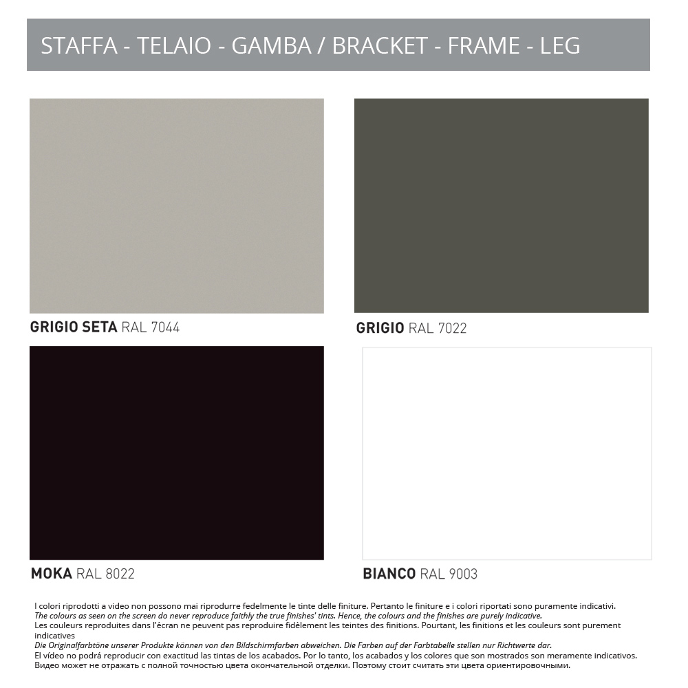 Uwaga Kolekcja toleruje światło słoneczne i deszcz. Zalecamy regularną konserwację, a szczególną dbałość o zabezpieczenie przedmiotów na wypadek niekorzystnych warunków atmosferycznych (lód, grad, nagłe zmiany temperatury, wilgotności, uporczywy upał lub ekstremalne zimno). Trwałość i integralność tych elementów zależy od staranności, z jaką są konserwowane. W przypadku produktów aluminiowych i stalowych (43, 304Ep, 316), nawet jeśli są one chronione przez zabiegi i wykończenia odpowiednie do użytku na zewnątrz, istotne jest zapobieganie stagnacji wody wewnątrz samego produktu. Właściwie wszystkie artykuły posiadają otwory techniczne niezbędne do zastosowania zabiegów ochronnych i wykończeniowych. Wprowadzenie wody do tych otworów i jej zastój może spowodować rdzę na wewnętrznych częściach rur.