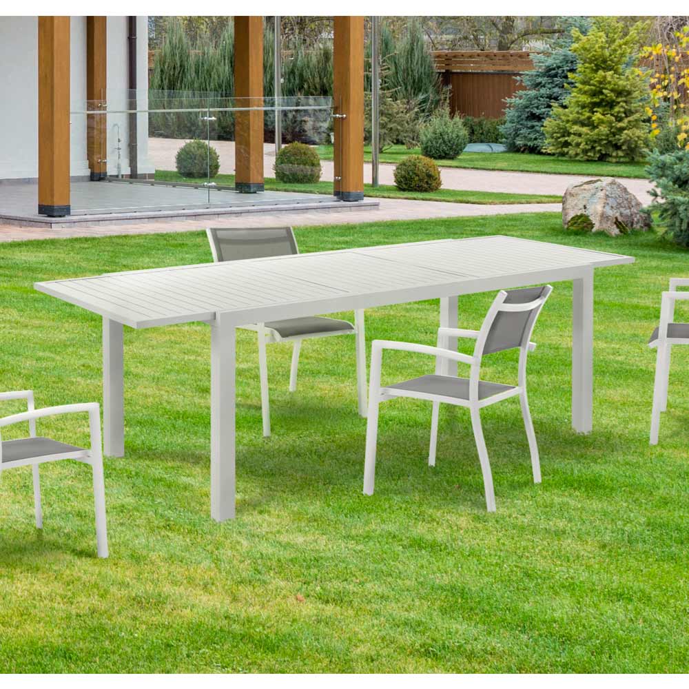 Ten stół ogrodowy to triumf minimalistycznej elegancji i nowoczesnej funkcjonalności . Dzięki matowemu białemu wykończeniu i czystemu designowi, stół ten jest idealnym płótnem na wszelkiego rodzaju spotkania towarzyskie na świeżym powietrzu, od letnich kolacji po brunche pod słońcem. Wykonany z trwałych, odpornych na warunki atmosferyczne materiałów, zapewnia długą żywotność i prostą konserwację, dzięki czemu możesz bez zmartwień skupić się na przyjemności zabawy.