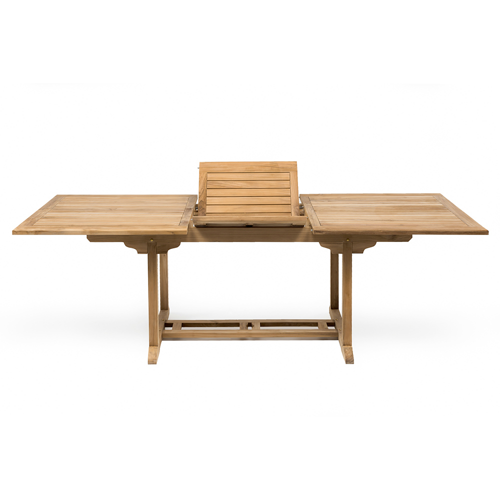 Rozkładany stół ogrodowy z drewna tekowego dostępny w różnych rozmiarach.