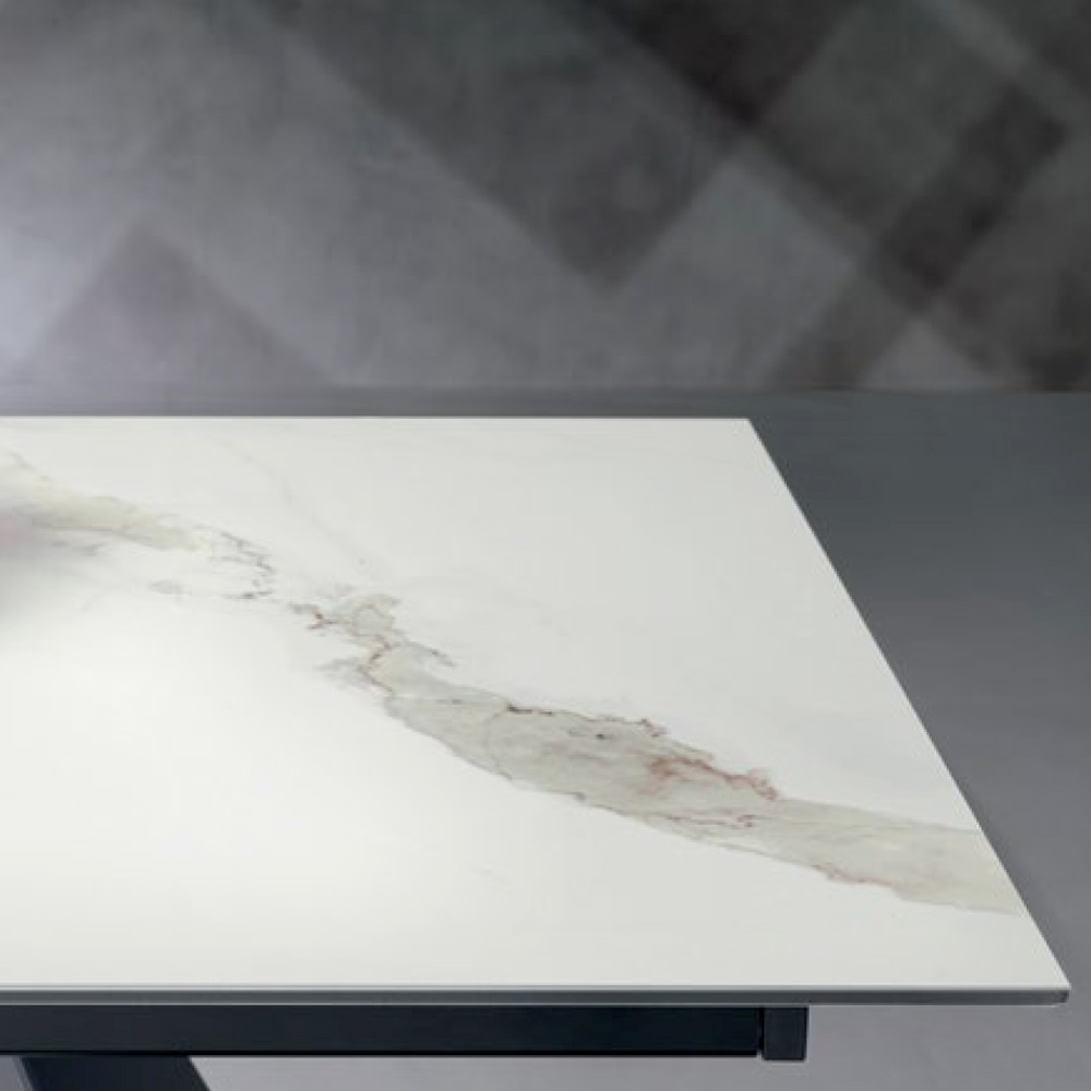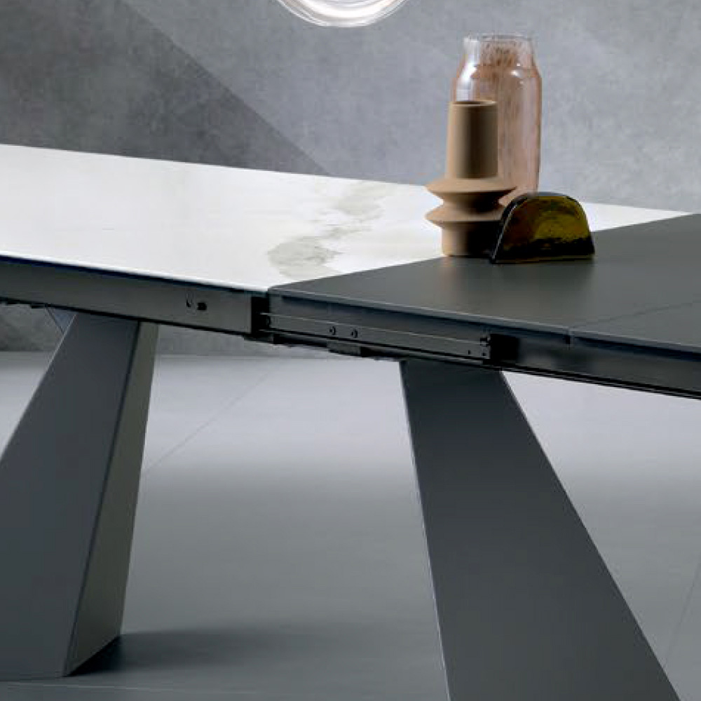 Rozkładany stół prostokątny z blatem ceramicznym o grubości 10/11 mm.