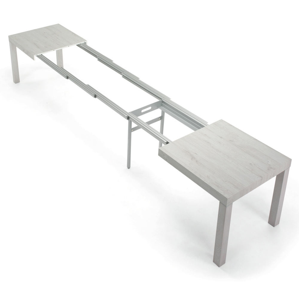 Rozkładany stół do jadalni o długości do 470 cm, wykonany ręcznie we Włoszech w całości z drewna melaminowego.